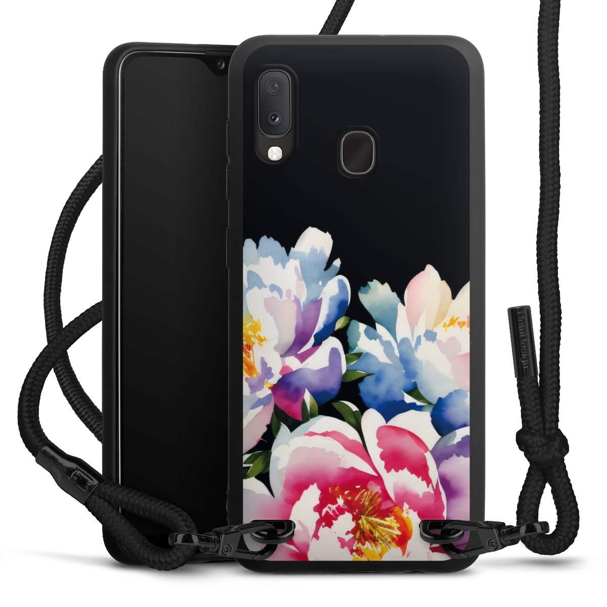 The matt black silicone case is made of flexible TPU (thermoplastic polyurethane) and offers robust protection. The durable, unbreakable material makes the cover flexible and dimensionally stable at the same time. The matte surface makes your design stand out more and is less susceptible to fingerprints and dirt. The stylish trend accessory fits comfortably in the hand and is perfectly complemented by the fabric (polyester) mobile phone strap. The braided fabric strap is approx. 1.70 metres long with a diameter of approx. 0.5 cm. Due to the special knotting technique, the length of the strap can be adjusted by simply pulling it, so that you can adapt it individually to your wishes. The practical case to wear around your neck is available with the fabric strap in black. As a little icing on the cake, we have provided the strap with a chic metal fastener in matt black. The strap is securely fastened to the case with loops made of high-quality genuine leather and press studs. The ends of the fabric strap are covered with metallic end caps and thus protected from fraying.