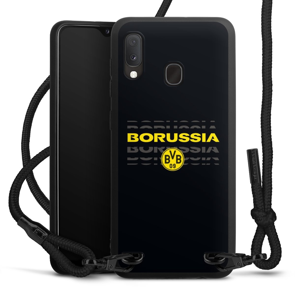 The matt black silicone case is made of flexible TPU (thermoplastic polyurethane) and offers robust protection. The durable, unbreakable material makes the cover flexible and dimensionally stable at the same time. The matte surface makes your design stand out more and is less susceptible to fingerprints and dirt. The stylish trend accessory fits comfortably in the hand and is perfectly complemented by the fabric (polyester) mobile phone strap. The braided fabric strap is approx. 1.70 metres long with a diameter of approx. 0.5 cm. Due to the special knotting technique, the length of the strap can be adjusted by simply pulling it, so that you can adapt it individually to your wishes. The practical case to wear around your neck is available with the fabric strap in black. As a little icing on the cake, we have provided the strap with a chic metal fastener in matt black. The strap is securely fastened to the case with loops made of high-quality genuine leather and press studs. The ends of the fabric strap are covered with metallic end caps and thus protected from fraying.