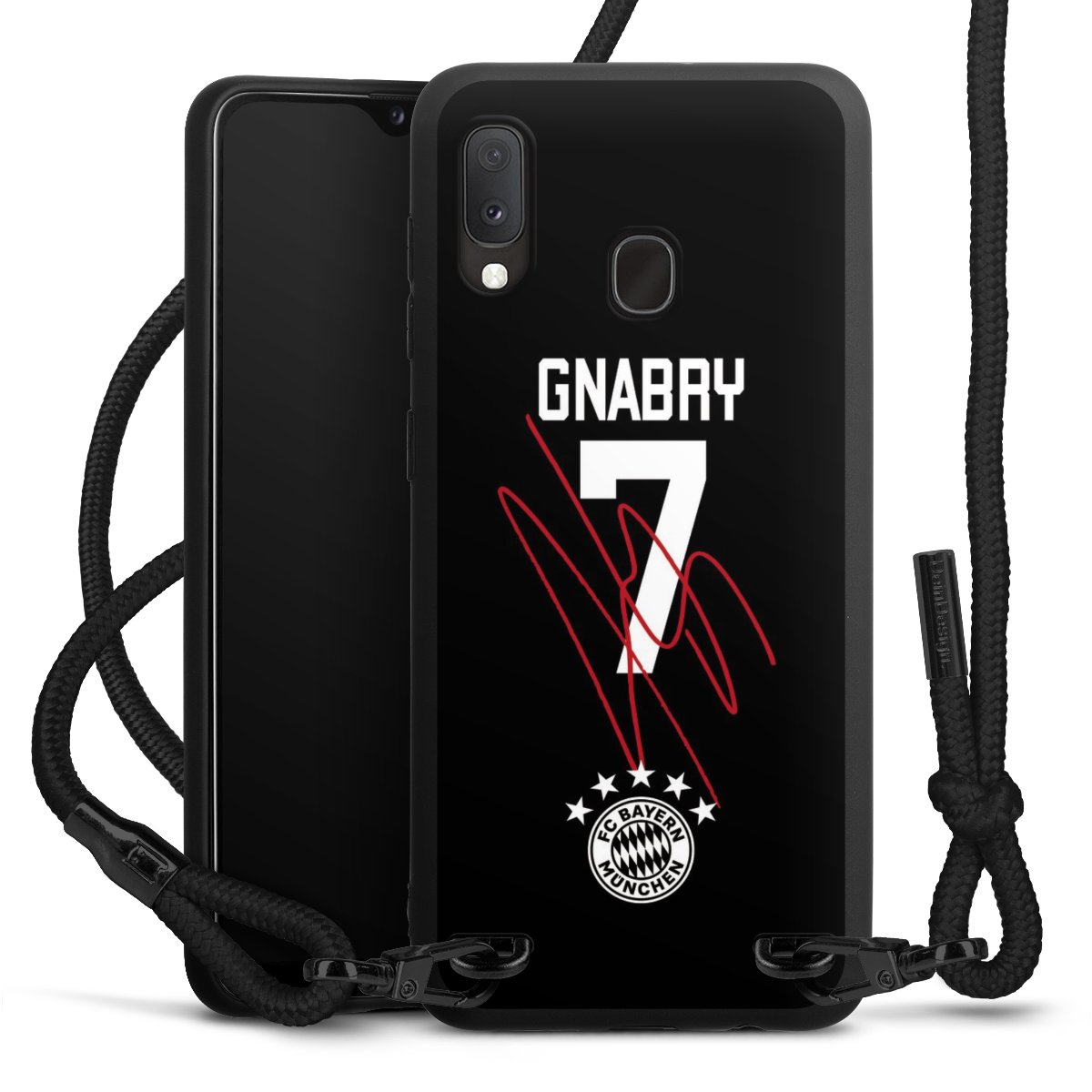 The matt black silicone case is made of flexible TPU (thermoplastic polyurethane) and offers robust protection. The durable, unbreakable material makes the cover flexible and dimensionally stable at the same time. The matte surface makes your design stand out more and is less susceptible to fingerprints and dirt. The stylish trend accessory fits comfortably in the hand and is perfectly complemented by the fabric (polyester) mobile phone strap. The braided fabric strap is approx. 1.70 metres long with a diameter of approx. 0.5 cm. Due to the special knotting technique, the length of the strap can be adjusted by simply pulling it, so that you can adapt it individually to your wishes. The practical case to wear around your neck is available with the fabric strap in black. As a little icing on the cake, we have provided the strap with a chic metal fastener in matt black. The strap is securely fastened to the case with loops made of high-quality genuine leather and press studs. The ends of the fabric strap are covered with metallic end caps and thus protected from fraying.