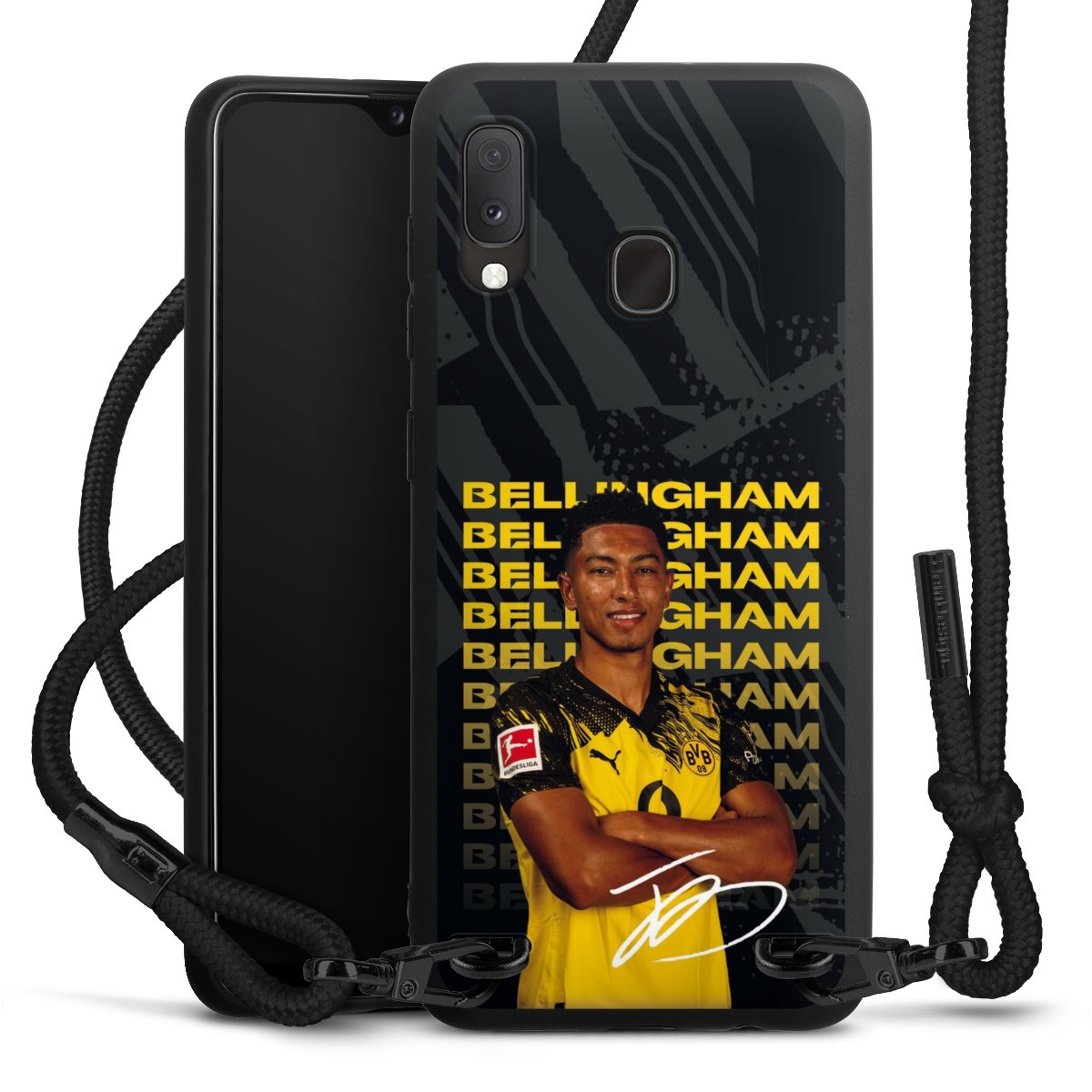 The matt black silicone case is made of flexible TPU (thermoplastic polyurethane) and offers robust protection. The durable, unbreakable material makes the cover flexible and dimensionally stable at the same time. The matte surface makes your design stand out more and is less susceptible to fingerprints and dirt. The stylish trend accessory fits comfortably in the hand and is perfectly complemented by the fabric (polyester) mobile phone strap. The braided fabric strap is approx. 1.70 metres long with a diameter of approx. 0.5 cm. Due to the special knotting technique, the length of the strap can be adjusted by simply pulling it, so that you can adapt it individually to your wishes. The practical case to wear around your neck is available with the fabric strap in black. As a little icing on the cake, we have provided the strap with a chic metal fastener in matt black. The strap is securely fastened to the case with loops made of high-quality genuine leather and press studs. The ends of the fabric strap are covered with metallic end caps and thus protected from fraying.