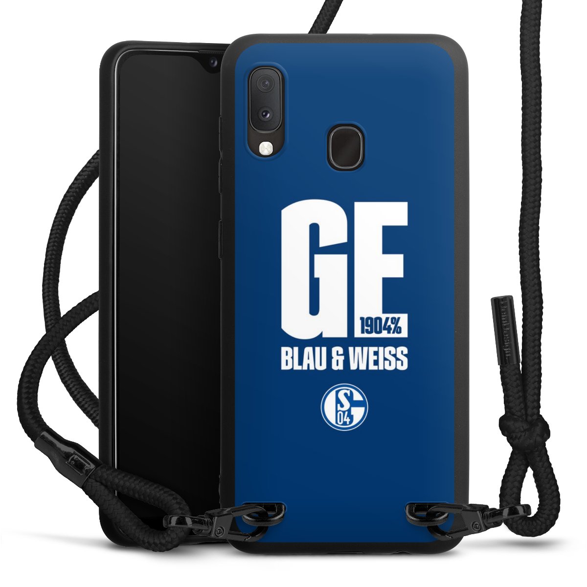 The matt black silicone case is made of flexible TPU (thermoplastic polyurethane) and offers robust protection. The durable, unbreakable material makes the cover flexible and dimensionally stable at the same time. The matte surface makes your design stand out more and is less susceptible to fingerprints and dirt. The stylish trend accessory fits comfortably in the hand and is perfectly complemented by the fabric (polyester) mobile phone strap. The braided fabric strap is approx. 1.70 metres long with a diameter of approx. 0.5 cm. Due to the special knotting technique, the length of the strap can be adjusted by simply pulling it, so that you can adapt it individually to your wishes. The practical case to wear around your neck is available with the fabric strap in black. As a little icing on the cake, we have provided the strap with a chic metal fastener in matt black. The strap is securely fastened to the case with loops made of high-quality genuine leather and press studs. The ends of the fabric strap are covered with metallic end caps and thus protected from fraying.