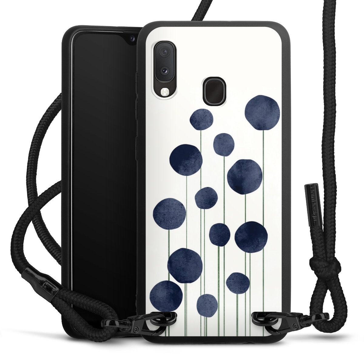 The matt black silicone case is made of flexible TPU (thermoplastic polyurethane) and offers robust protection. The durable, unbreakable material makes the cover flexible and dimensionally stable at the same time. The matte surface makes your design stand out more and is less susceptible to fingerprints and dirt. The stylish trend accessory fits comfortably in the hand and is perfectly complemented by the fabric (polyester) mobile phone strap. The braided fabric strap is approx. 1.70 metres long with a diameter of approx. 0.5 cm. Due to the special knotting technique, the length of the strap can be adjusted by simply pulling it, so that you can adapt it individually to your wishes. The practical case to wear around your neck is available with the fabric strap in black. As a little icing on the cake, we have provided the strap with a chic metal fastener in matt black. The strap is securely fastened to the case with loops made of high-quality genuine leather and press studs. The ends of the fabric strap are covered with metallic end caps and thus protected from fraying.