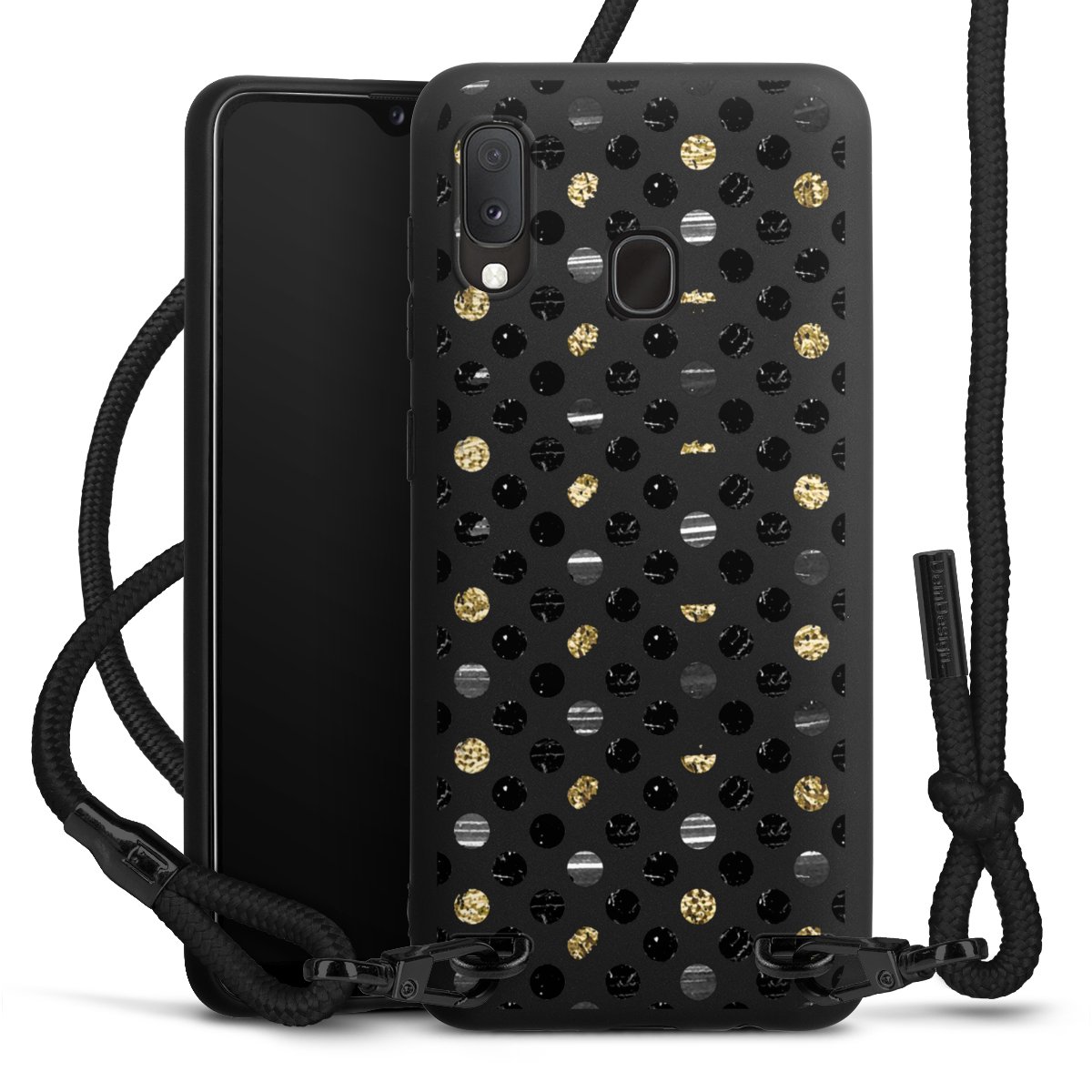 The matt black silicone case is made of flexible TPU (thermoplastic polyurethane) and offers robust protection. The durable, unbreakable material makes the cover flexible and dimensionally stable at the same time. The matte surface makes your design stand out more and is less susceptible to fingerprints and dirt. The stylish trend accessory fits comfortably in the hand and is perfectly complemented by the fabric (polyester) mobile phone strap. The braided fabric strap is approx. 1.70 metres long with a diameter of approx. 0.5 cm. Due to the special knotting technique, the length of the strap can be adjusted by simply pulling it, so that you can adapt it individually to your wishes. The practical case to wear around your neck is available with the fabric strap in black. As a little icing on the cake, we have provided the strap with a chic metal fastener in matt black. The strap is securely fastened to the case with loops made of high-quality genuine leather and press studs. The ends of the fabric strap are covered with metallic end caps and thus protected from fraying.