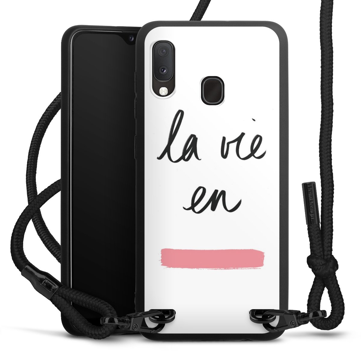 We use the solid direct print process for this phone case, which is why the print area only covers the back and the edge remains unprinted. The case to wear around your neck can be ordered unprinted, fully printed, or partially printed. For your design, either choose one of our exclusive shop motifs or get creative and create your own design, for example with photos and overlays. Design your own personal trend accessory and make an individual statement on the streets!