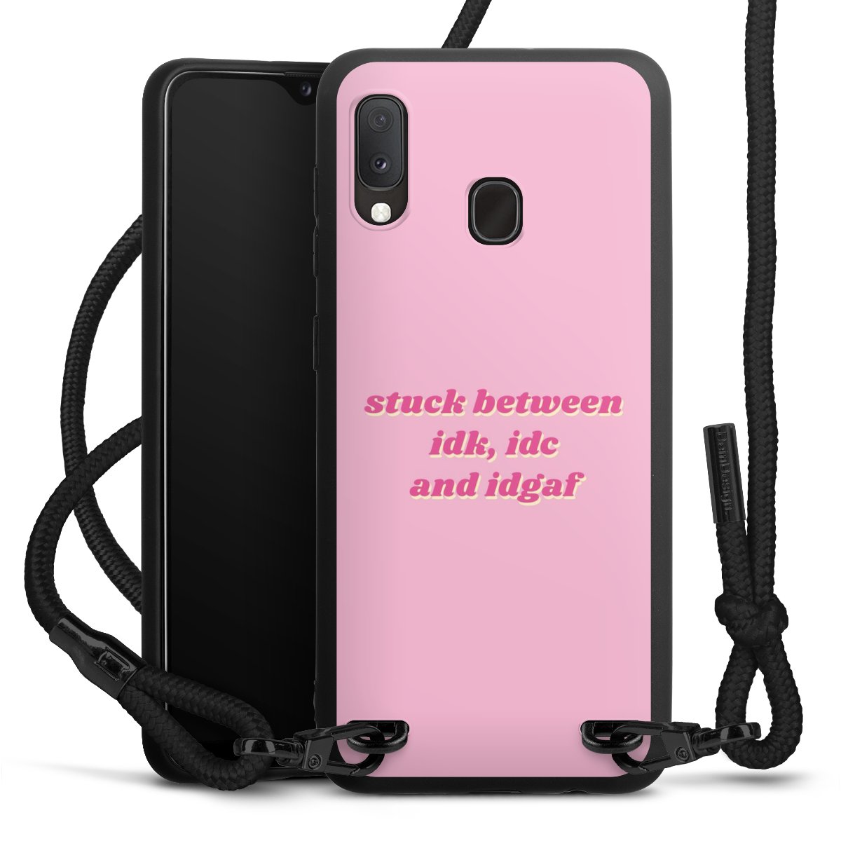 The matt black silicone case is made of flexible TPU (thermoplastic polyurethane) and offers robust protection. The durable, unbreakable material makes the cover flexible and dimensionally stable at the same time. The matte surface makes your design stand out more and is less susceptible to fingerprints and dirt. The stylish trend accessory fits comfortably in the hand and is perfectly complemented by the fabric (polyester) mobile phone strap. The braided fabric strap is approx. 1.70 metres long with a diameter of approx. 0.5 cm. Due to the special knotting technique, the length of the strap can be adjusted by simply pulling it, so that you can adapt it individually to your wishes. The practical case to wear around your neck is available with the fabric strap in black. As a little icing on the cake, we have provided the strap with a chic metal fastener in matt black. The strap is securely fastened to the case with loops made of high-quality genuine leather and press studs. The ends of the fabric strap are covered with metallic end caps and thus protected from fraying.