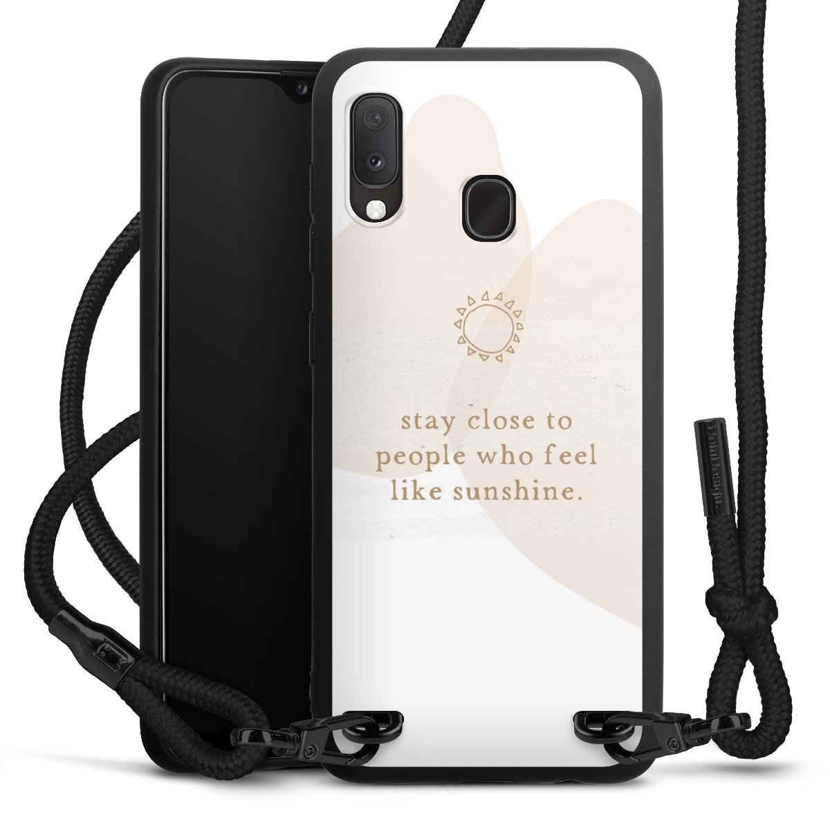The matt black silicone case is made of flexible TPU (thermoplastic polyurethane) and offers robust protection. The durable, unbreakable material makes the cover flexible and dimensionally stable at the same time. The matte surface makes your design stand out more and is less susceptible to fingerprints and dirt. The stylish trend accessory fits comfortably in the hand and is perfectly complemented by the fabric (polyester) mobile phone strap. The braided fabric strap is approx. 1.70 metres long with a diameter of approx. 0.5 cm. Due to the special knotting technique, the length of the strap can be adjusted by simply pulling it, so that you can adapt it individually to your wishes. The practical case to wear around your neck is available with the fabric strap in black. As a little icing on the cake, we have provided the strap with a chic metal fastener in matt black. The strap is securely fastened to the case with loops made of high-quality genuine leather and press studs. The ends of the fabric strap are covered with metallic end caps and thus protected from fraying.