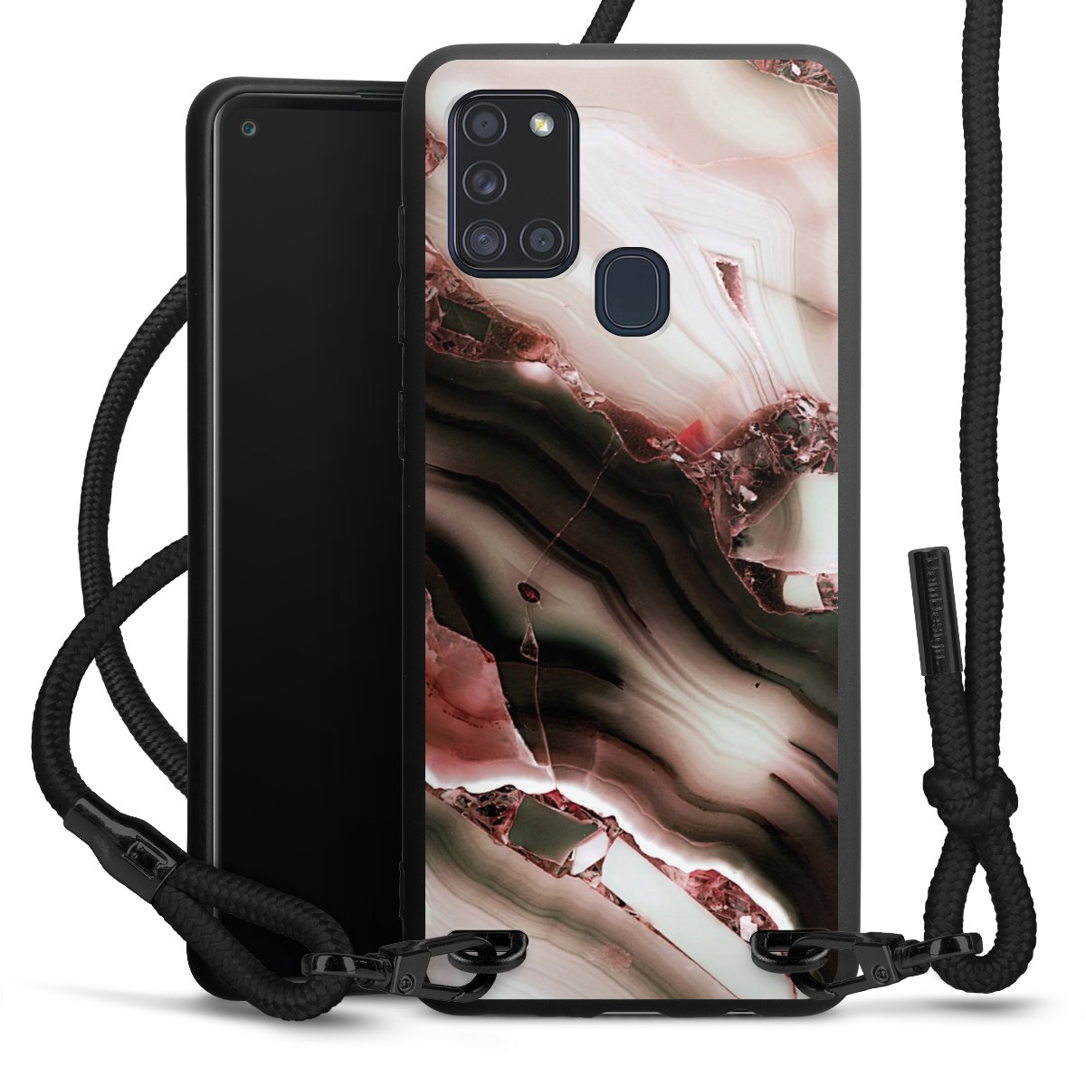 We use the solid direct print process for this phone case, which is why the print area only covers the back and the edge remains unprinted. The case to wear around your neck can be ordered unprinted, fully printed, or partially printed. For your design, either choose one of our exclusive shop motifs or get creative and create your own design, for example with photos and overlays. Design your own personal trend accessory and make an individual statement on the streets!