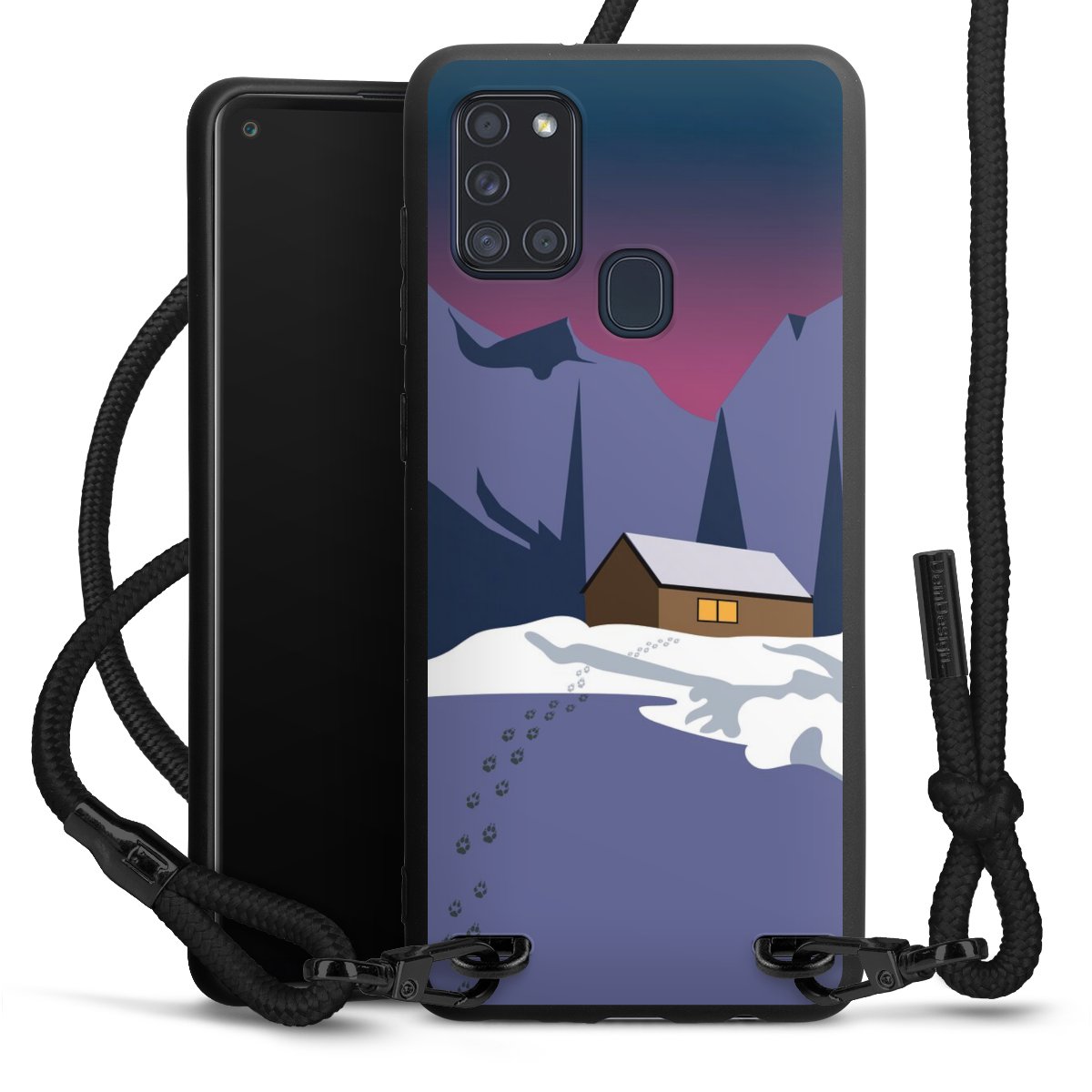 We use the solid direct print process for this phone case, which is why the print area only covers the back and the edge remains unprinted. The case to wear around your neck can be ordered unprinted, fully printed, or partially printed. For your design, either choose one of our exclusive shop motifs or get creative and create your own design, for example with photos and overlays. Design your own personal trend accessory and make an individual statement on the streets!