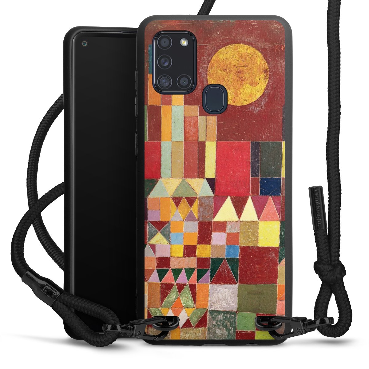 The matt black silicone case is made of flexible TPU (thermoplastic polyurethane) and offers robust protection. The durable, unbreakable material makes the cover flexible and dimensionally stable at the same time. The matte surface makes your design stand out more and is less susceptible to fingerprints and dirt. The stylish trend accessory fits comfortably in the hand and is perfectly complemented by the fabric (polyester) mobile phone strap. The braided fabric strap is approx. 1.70 metres long with a diameter of approx. 0.5 cm. Due to the special knotting technique, the length of the strap can be adjusted by simply pulling it, so that you can adapt it individually to your wishes. The practical case to wear around your neck is available with the fabric strap in black. As a little icing on the cake, we have provided the strap with a chic metal fastener in matt black. The strap is securely fastened to the case with loops made of high-quality genuine leather and press studs. The ends of the fabric strap are covered with metallic end caps and thus protected from fraying.