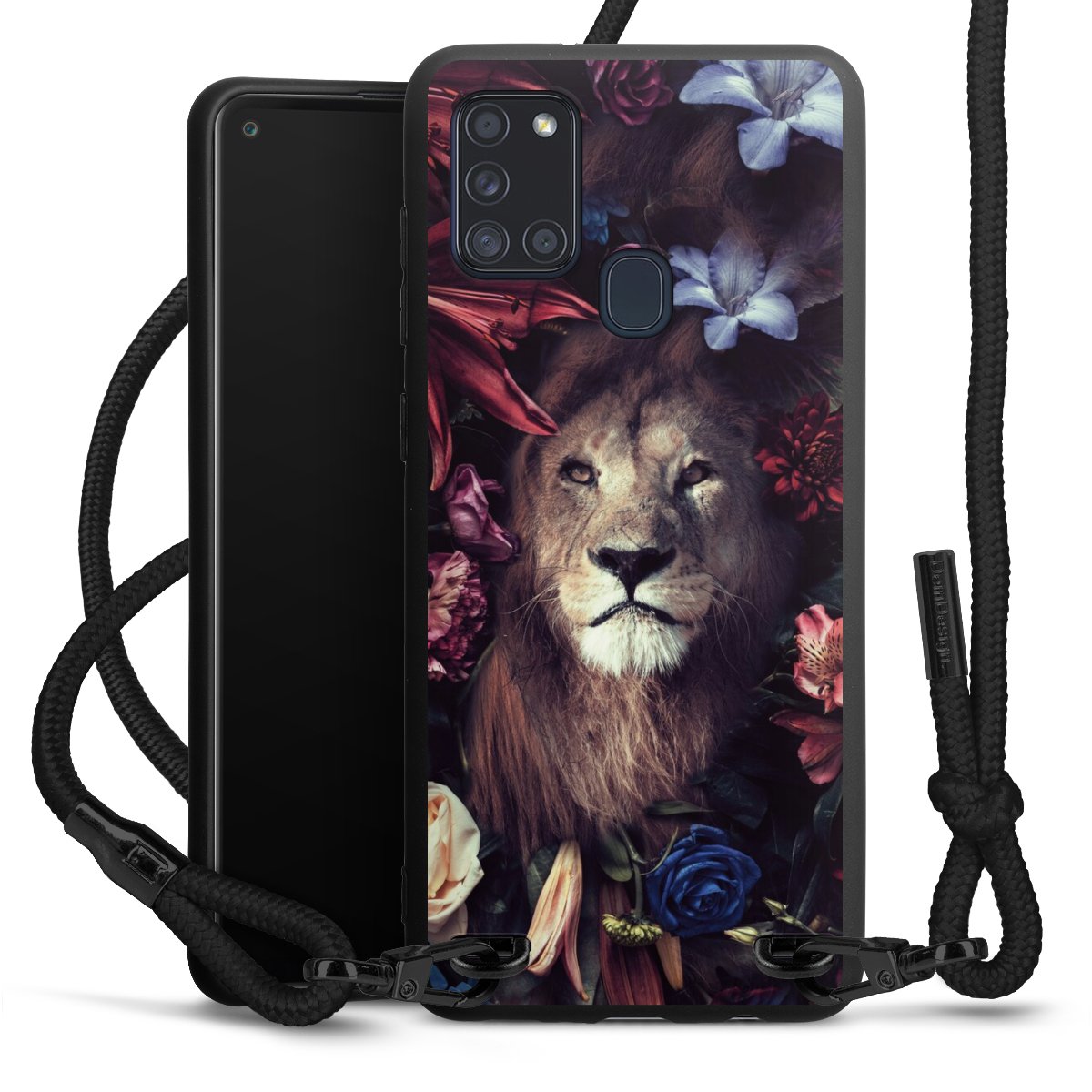 The matt black silicone case is made of flexible TPU (thermoplastic polyurethane) and offers robust protection. The durable, unbreakable material makes the cover flexible and dimensionally stable at the same time. The matte surface makes your design stand out more and is less susceptible to fingerprints and dirt. The stylish trend accessory fits comfortably in the hand and is perfectly complemented by the fabric (polyester) mobile phone strap. The braided fabric strap is approx. 1.70 metres long with a diameter of approx. 0.5 cm. Due to the special knotting technique, the length of the strap can be adjusted by simply pulling it, so that you can adapt it individually to your wishes. The practical case to wear around your neck is available with the fabric strap in black. As a little icing on the cake, we have provided the strap with a chic metal fastener in matt black. The strap is securely fastened to the case with loops made of high-quality genuine leather and press studs. The ends of the fabric strap are covered with metallic end caps and thus protected from fraying.