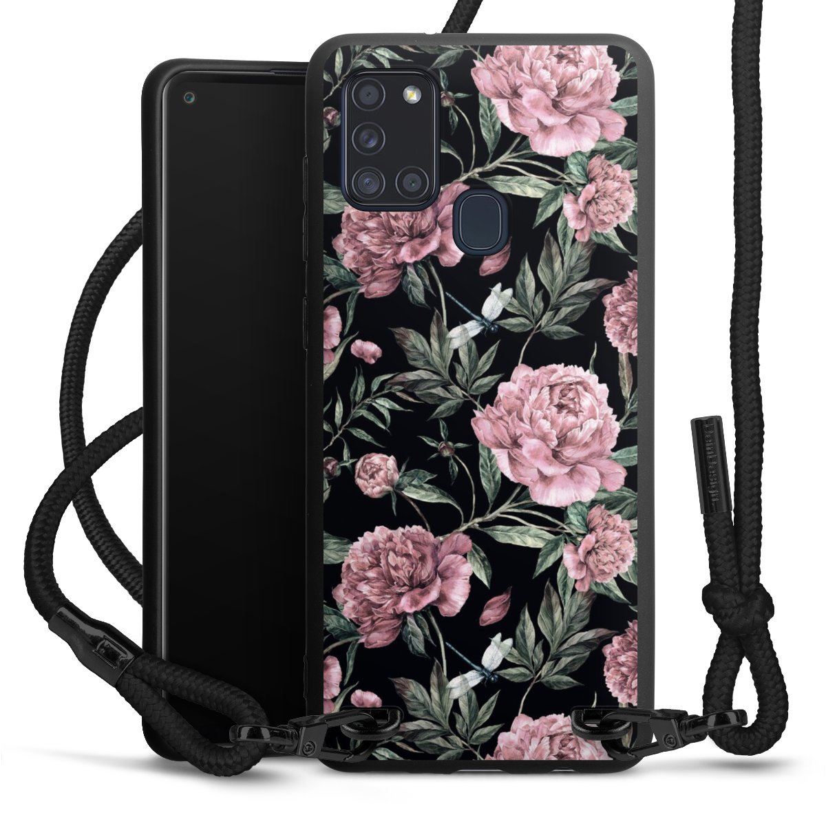 The matt black silicone case is made of flexible TPU (thermoplastic polyurethane) and offers robust protection. The durable, unbreakable material makes the cover flexible and dimensionally stable at the same time. The matte surface makes your design stand out more and is less susceptible to fingerprints and dirt. The stylish trend accessory fits comfortably in the hand and is perfectly complemented by the fabric (polyester) mobile phone strap. The braided fabric strap is approx. 1.70 metres long with a diameter of approx. 0.5 cm. Due to the special knotting technique, the length of the strap can be adjusted by simply pulling it, so that you can adapt it individually to your wishes. The practical case to wear around your neck is available with the fabric strap in black. As a little icing on the cake, we have provided the strap with a chic metal fastener in matt black. The strap is securely fastened to the case with loops made of high-quality genuine leather and press studs. The ends of the fabric strap are covered with metallic end caps and thus protected from fraying.