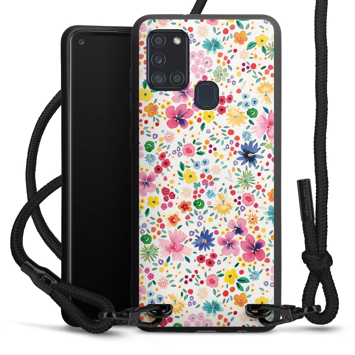 The matt black silicone case is made of flexible TPU (thermoplastic polyurethane) and offers robust protection. The durable, unbreakable material makes the cover flexible and dimensionally stable at the same time. The matte surface makes your design stand out more and is less susceptible to fingerprints and dirt. The stylish trend accessory fits comfortably in the hand and is perfectly complemented by the fabric (polyester) mobile phone strap. The braided fabric strap is approx. 1.70 metres long with a diameter of approx. 0.5 cm. Due to the special knotting technique, the length of the strap can be adjusted by simply pulling it, so that you can adapt it individually to your wishes. The practical case to wear around your neck is available with the fabric strap in black. As a little icing on the cake, we have provided the strap with a chic metal fastener in matt black. The strap is securely fastened to the case with loops made of high-quality genuine leather and press studs. The ends of the fabric strap are covered with metallic end caps and thus protected from fraying.