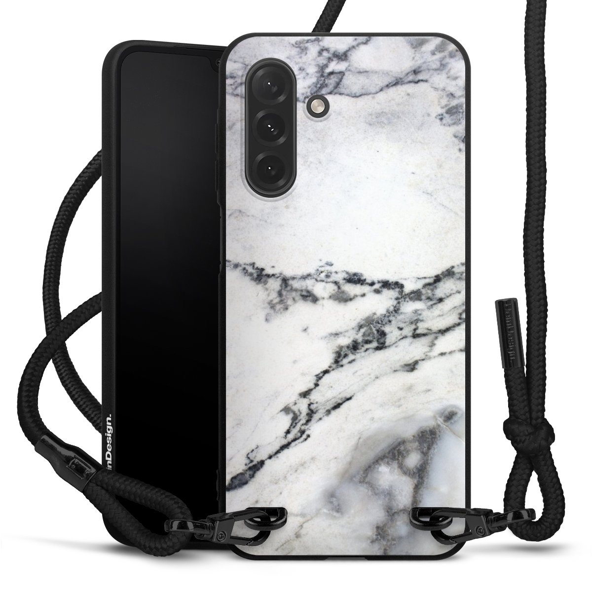 The matt black silicone case is made of flexible TPU (thermoplastic polyurethane) and offers robust protection. The durable, unbreakable material makes the cover flexible and dimensionally stable at the same time. The matte surface makes your design stand out more and is less susceptible to fingerprints and dirt. The stylish trend accessory fits comfortably in the hand and is perfectly complemented by the fabric (polyester) mobile phone strap. The braided fabric strap is approx. 1.70 metres long with a diameter of approx. 0.5 cm. Due to the special knotting technique, the length of the strap can be adjusted by simply pulling it, so that you can adapt it individually to your wishes. The practical case to wear around your neck is available with the fabric strap in black. As a little icing on the cake, we have provided the strap with a chic metal fastener in matt black. The strap is securely fastened to the case with loops made of high-quality genuine leather and press studs. The ends of the fabric strap are covered with metallic end caps and thus protected from fraying.
