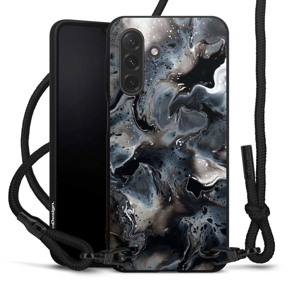 Pure Black: Phone case, fabric strap and metal details in stylish matt black.