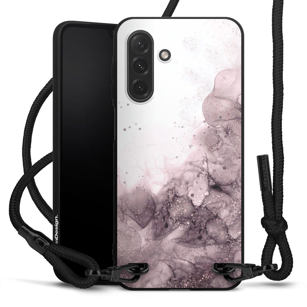 The matt black silicone case is made of flexible TPU (thermoplastic polyurethane) and offers robust protection. The durable, unbreakable material makes the cover flexible and dimensionally stable at the same time. The matte surface makes your design stand out more and is less susceptible to fingerprints and dirt. The stylish trend accessory fits comfortably in the hand and is perfectly complemented by the fabric (polyester) mobile phone strap. The braided fabric strap is approx. 1.70 metres long with a diameter of approx. 0.5 cm. Due to the special knotting technique, the length of the strap can be adjusted by simply pulling it, so that you can adapt it individually to your wishes. The practical case to wear around your neck is available with the fabric strap in black. As a little icing on the cake, we have provided the strap with a chic metal fastener in matt black. The strap is securely fastened to the case with loops made of high-quality genuine leather and press studs. The ends of the fabric strap are covered with metallic end caps and thus protected from fraying.