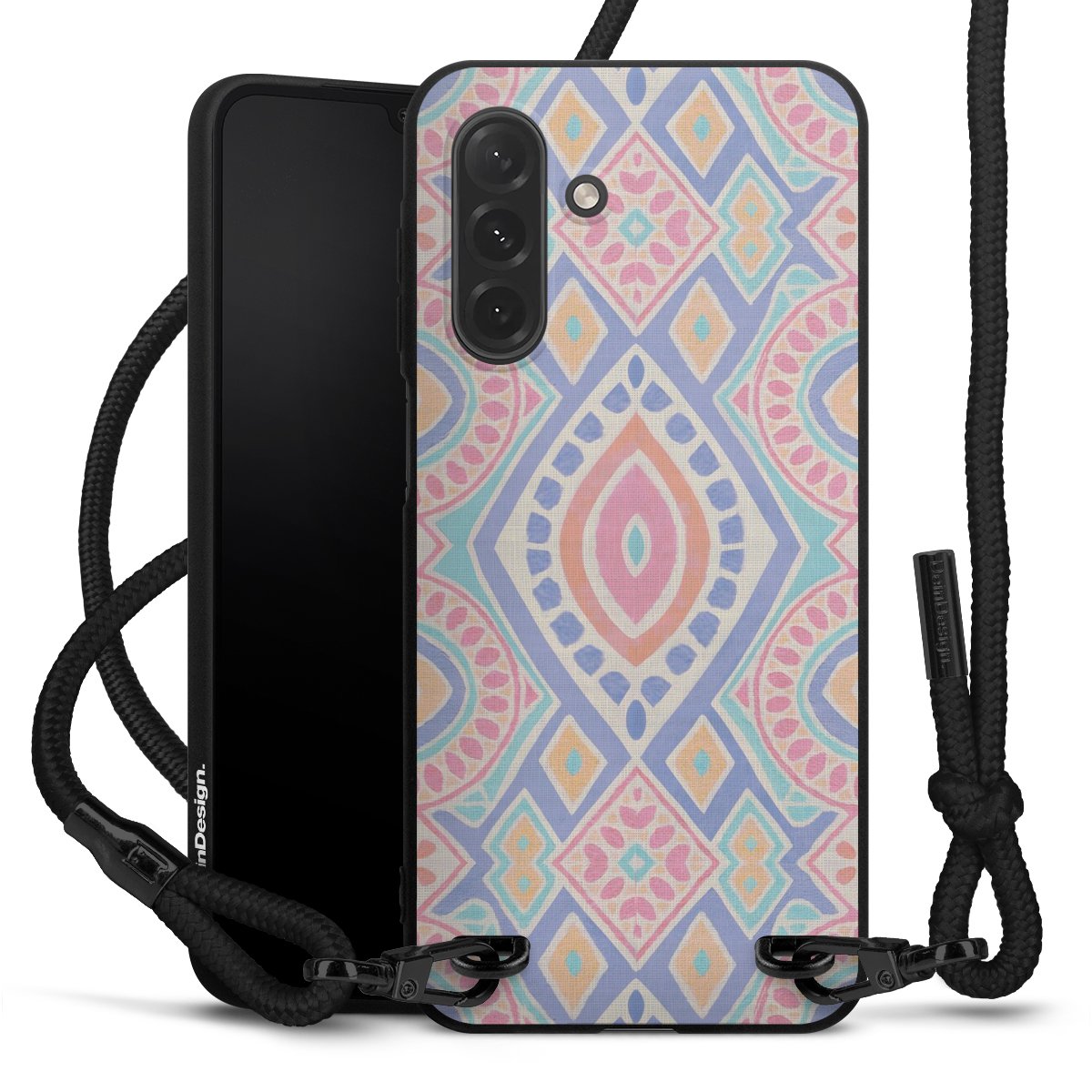 We use the solid direct print process for this phone case, which is why the print area only covers the back and the edge remains unprinted. The case to wear around your neck can be ordered unprinted, fully printed, or partially printed. For your design, either choose one of our exclusive shop motifs or get creative and create your own design, for example with photos and overlays. Design your own personal trend accessory and make an individual statement on the streets!