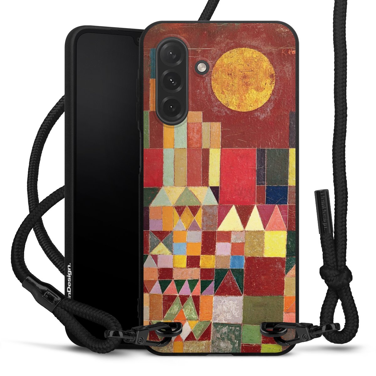 The matt black silicone case is made of flexible TPU (thermoplastic polyurethane) and offers robust protection. The durable, unbreakable material makes the cover flexible and dimensionally stable at the same time. The matte surface makes your design stand out more and is less susceptible to fingerprints and dirt. The stylish trend accessory fits comfortably in the hand and is perfectly complemented by the fabric (polyester) mobile phone strap. The braided fabric strap is approx. 1.70 metres long with a diameter of approx. 0.5 cm. Due to the special knotting technique, the length of the strap can be adjusted by simply pulling it, so that you can adapt it individually to your wishes. The practical case to wear around your neck is available with the fabric strap in black. As a little icing on the cake, we have provided the strap with a chic metal fastener in matt black. The strap is securely fastened to the case with loops made of high-quality genuine leather and press studs. The ends of the fabric strap are covered with metallic end caps and thus protected from fraying.