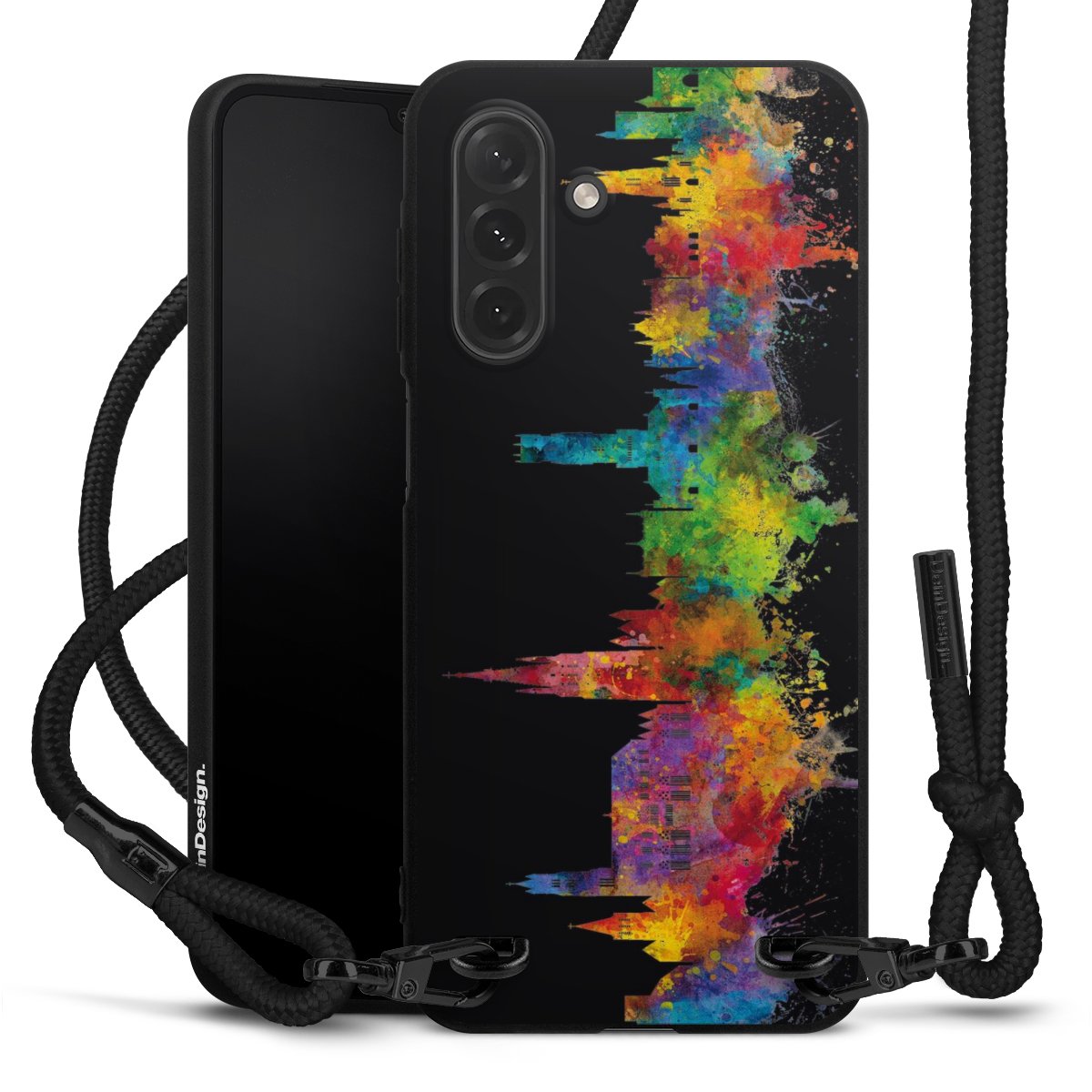 We use the solid direct print process for this phone case, which is why the print area only covers the back and the edge remains unprinted. The case to wear around your neck can be ordered unprinted, fully printed, or partially printed. For your design, either choose one of our exclusive shop motifs or get creative and create your own design, for example with photos and overlays. Design your own personal trend accessory and make an individual statement on the streets!