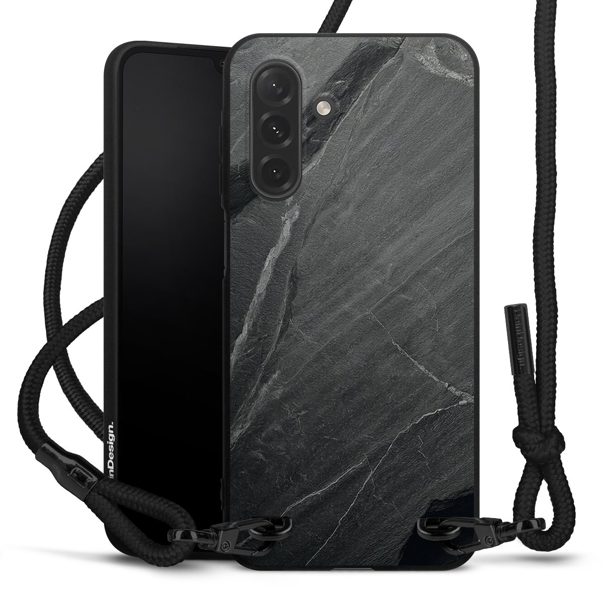 Pure Black: Phone case, fabric strap and metal details in stylish matt black.
