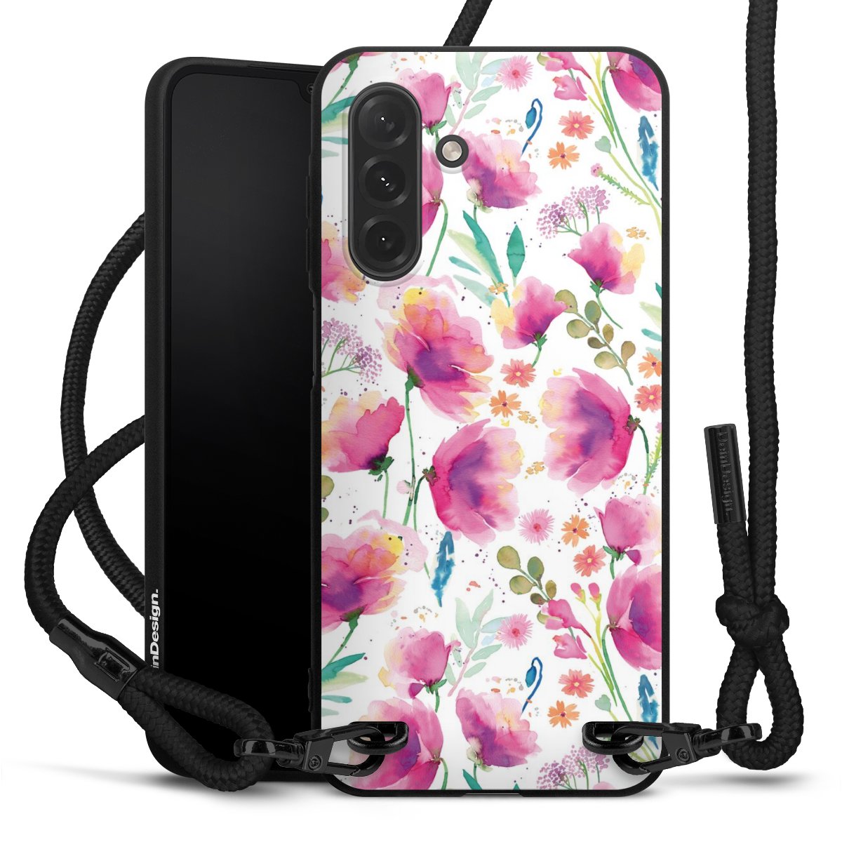 We use the solid direct print process for this phone case, which is why the print area only covers the back and the edge remains unprinted. The case to wear around your neck can be ordered unprinted, fully printed, or partially printed. For your design, either choose one of our exclusive shop motifs or get creative and create your own design, for example with photos and overlays. Design your own personal trend accessory and make an individual statement on the streets!