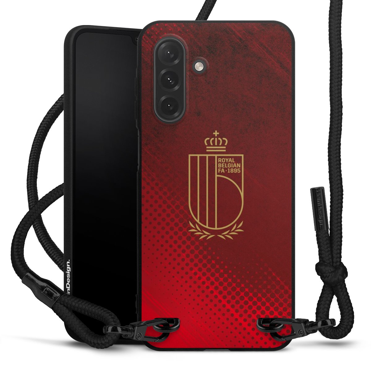 The matt black silicone case is made of flexible TPU (thermoplastic polyurethane) and offers robust protection. The durable, unbreakable material makes the cover flexible and dimensionally stable at the same time. The matte surface makes your design stand out more and is less susceptible to fingerprints and dirt. The stylish trend accessory fits comfortably in the hand and is perfectly complemented by the fabric (polyester) mobile phone strap. The braided fabric strap is approx. 1.70 metres long with a diameter of approx. 0.5 cm. Due to the special knotting technique, the length of the strap can be adjusted by simply pulling it, so that you can adapt it individually to your wishes. The practical case to wear around your neck is available with the fabric strap in black. As a little icing on the cake, we have provided the strap with a chic metal fastener in matt black. The strap is securely fastened to the case with loops made of high-quality genuine leather and press studs. The ends of the fabric strap are covered with metallic end caps and thus protected from fraying.