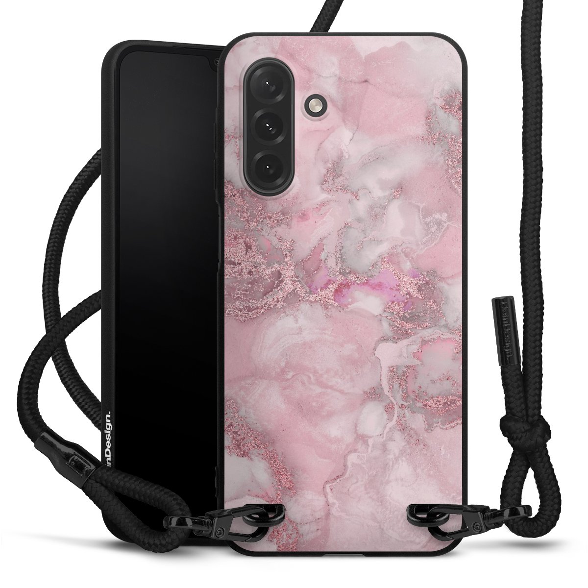 The matt black silicone case is made of flexible TPU (thermoplastic polyurethane) and offers robust protection. The durable, unbreakable material makes the cover flexible and dimensionally stable at the same time. The matte surface makes your design stand out more and is less susceptible to fingerprints and dirt. The stylish trend accessory fits comfortably in the hand and is perfectly complemented by the fabric (polyester) mobile phone strap. The braided fabric strap is approx. 1.70 metres long with a diameter of approx. 0.5 cm. Due to the special knotting technique, the length of the strap can be adjusted by simply pulling it, so that you can adapt it individually to your wishes. The practical case to wear around your neck is available with the fabric strap in black. As a little icing on the cake, we have provided the strap with a chic metal fastener in matt black. The strap is securely fastened to the case with loops made of high-quality genuine leather and press studs. The ends of the fabric strap are covered with metallic end caps and thus protected from fraying.