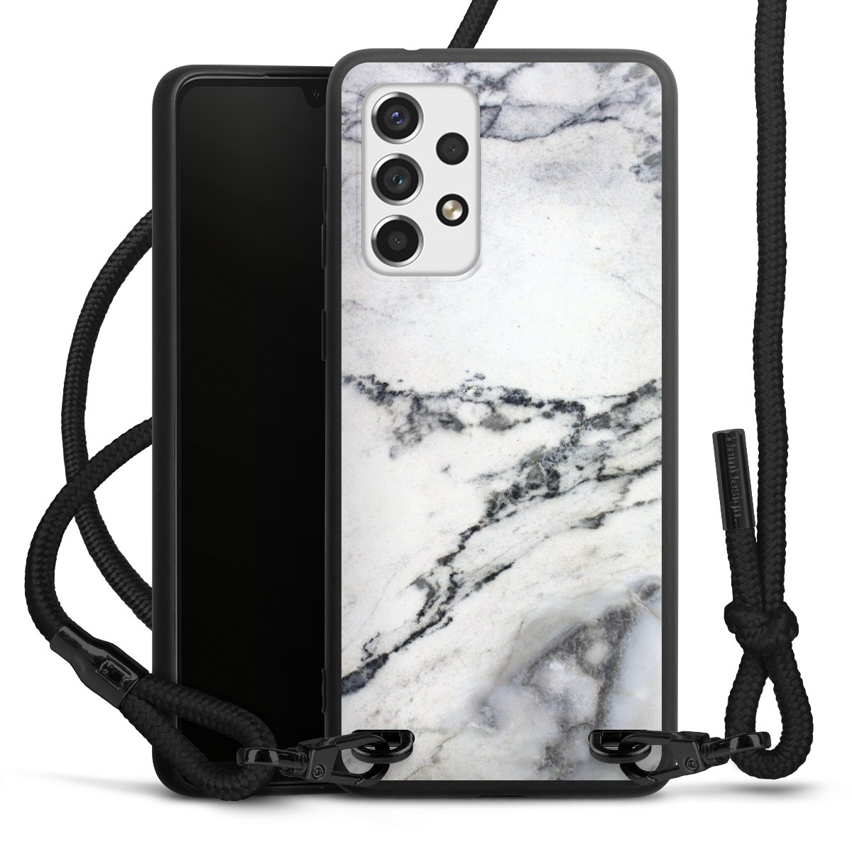 The matt black silicone case is made of flexible TPU (thermoplastic polyurethane) and offers robust protection. The durable, unbreakable material makes the cover flexible and dimensionally stable at the same time. The matte surface makes your design stand out more and is less susceptible to fingerprints and dirt. The stylish trend accessory fits comfortably in the hand and is perfectly complemented by the fabric (polyester) mobile phone strap. The braided fabric strap is approx. 1.70 metres long with a diameter of approx. 0.5 cm. Due to the special knotting technique, the length of the strap can be adjusted by simply pulling it, so that you can adapt it individually to your wishes. The practical case to wear around your neck is available with the fabric strap in black. As a little icing on the cake, we have provided the strap with a chic metal fastener in matt black. The strap is securely fastened to the case with loops made of high-quality genuine leather and press studs. The ends of the fabric strap are covered with metallic end caps and thus protected from fraying.