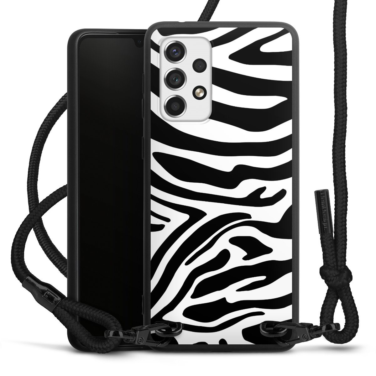 We use the solid direct print process for this phone case, which is why the print area only covers the back and the edge remains unprinted. The case to wear around your neck can be ordered unprinted, fully printed, or partially printed. For your design, either choose one of our exclusive shop motifs or get creative and create your own design, for example with photos and overlays. Design your own personal trend accessory and make an individual statement on the streets!
