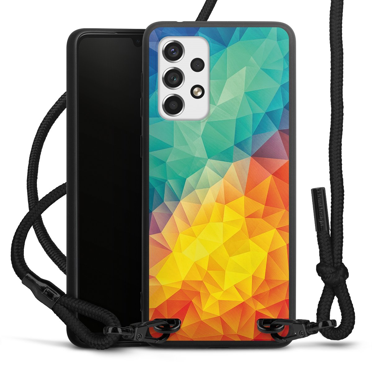 We use the solid direct print process for this phone case, which is why the print area only covers the back and the edge remains unprinted. The case to wear around your neck can be ordered unprinted, fully printed, or partially printed. For your design, either choose one of our exclusive shop motifs or get creative and create your own design, for example with photos and overlays. Design your own personal trend accessory and make an individual statement on the streets!