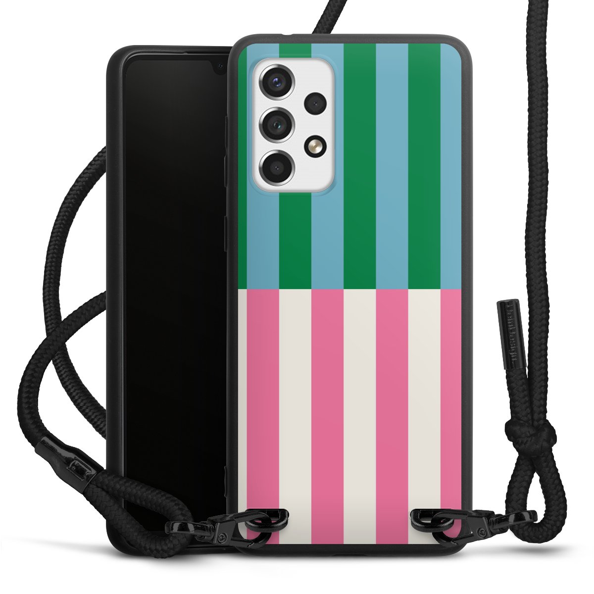 We use the solid direct print process for this phone case, which is why the print area only covers the back and the edge remains unprinted. The case to wear around your neck can be ordered unprinted, fully printed, or partially printed. For your design, either choose one of our exclusive shop motifs or get creative and create your own design, for example with photos and overlays. Design your own personal trend accessory and make an individual statement on the streets!
