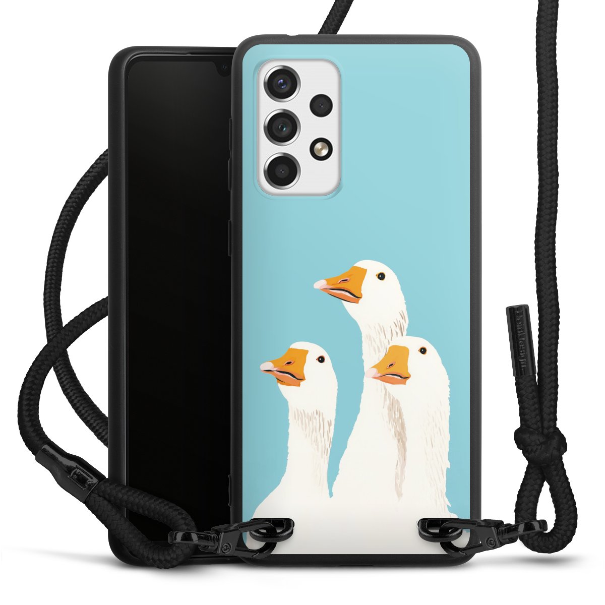 We use the solid direct print process for this phone case, which is why the print area only covers the back and the edge remains unprinted. The case to wear around your neck can be ordered unprinted, fully printed, or partially printed. For your design, either choose one of our exclusive shop motifs or get creative and create your own design, for example with photos and overlays. Design your own personal trend accessory and make an individual statement on the streets!