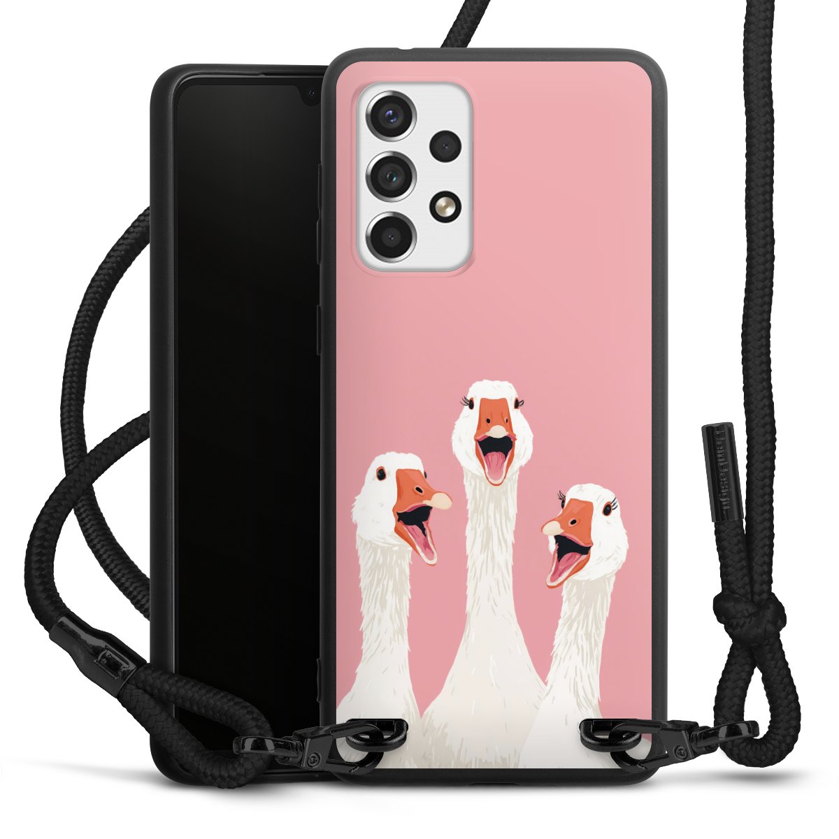 We use the solid direct print process for this phone case, which is why the print area only covers the back and the edge remains unprinted. The case to wear around your neck can be ordered unprinted, fully printed, or partially printed. For your design, either choose one of our exclusive shop motifs or get creative and create your own design, for example with photos and overlays. Design your own personal trend accessory and make an individual statement on the streets!
