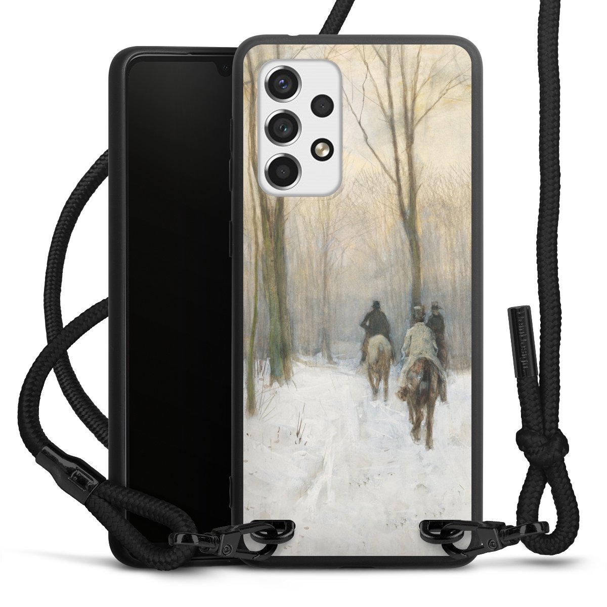 The matt black silicone case is made of flexible TPU (thermoplastic polyurethane) and offers robust protection. The durable, unbreakable material makes the cover flexible and dimensionally stable at the same time. The matte surface makes your design stand out more and is less susceptible to fingerprints and dirt. The stylish trend accessory fits comfortably in the hand and is perfectly complemented by the fabric (polyester) mobile phone strap. The braided fabric strap is approx. 1.70 metres long with a diameter of approx. 0.5 cm. Due to the special knotting technique, the length of the strap can be adjusted by simply pulling it, so that you can adapt it individually to your wishes. The practical case to wear around your neck is available with the fabric strap in black. As a little icing on the cake, we have provided the strap with a chic metal fastener in matt black. The strap is securely fastened to the case with loops made of high-quality genuine leather and press studs. The ends of the fabric strap are covered with metallic end caps and thus protected from fraying.