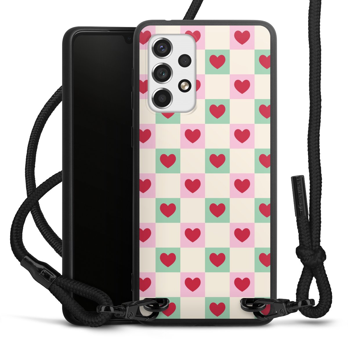 We use the solid direct print process for this phone case, which is why the print area only covers the back and the edge remains unprinted. The case to wear around your neck can be ordered unprinted, fully printed, or partially printed. For your design, either choose one of our exclusive shop motifs or get creative and create your own design, for example with photos and overlays. Design your own personal trend accessory and make an individual statement on the streets!