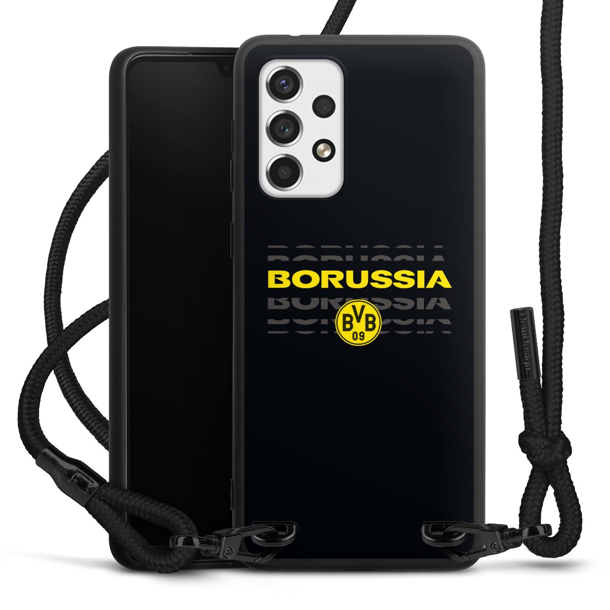 The matt black silicone case is made of flexible TPU (thermoplastic polyurethane) and offers robust protection. The durable, unbreakable material makes the cover flexible and dimensionally stable at the same time. The matte surface makes your design stand out more and is less susceptible to fingerprints and dirt. The stylish trend accessory fits comfortably in the hand and is perfectly complemented by the fabric (polyester) mobile phone strap. The braided fabric strap is approx. 1.70 metres long with a diameter of approx. 0.5 cm. Due to the special knotting technique, the length of the strap can be adjusted by simply pulling it, so that you can adapt it individually to your wishes. The practical case to wear around your neck is available with the fabric strap in black. As a little icing on the cake, we have provided the strap with a chic metal fastener in matt black. The strap is securely fastened to the case with loops made of high-quality genuine leather and press studs. The ends of the fabric strap are covered with metallic end caps and thus protected from fraying.