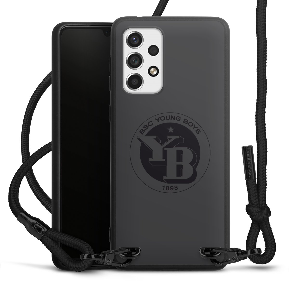 Pure Black: Phone case, fabric strap and metal details in stylish matt black.