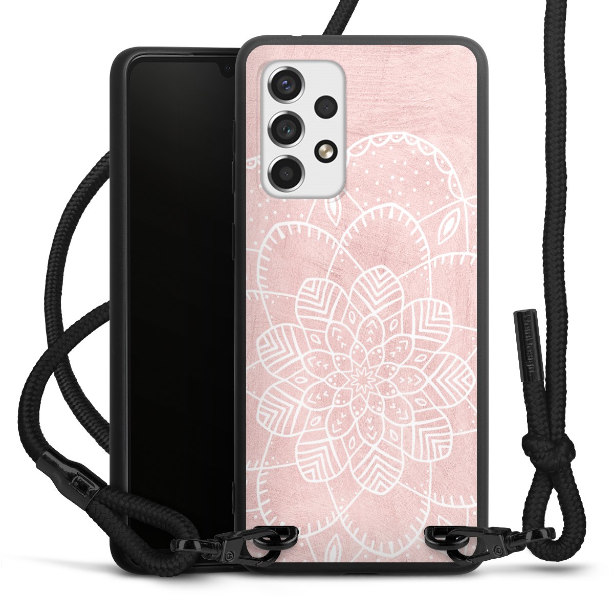 The matt black silicone case is made of flexible TPU (thermoplastic polyurethane) and offers robust protection. The durable, unbreakable material makes the cover flexible and dimensionally stable at the same time. The matte surface makes your design stand out more and is less susceptible to fingerprints and dirt. The stylish trend accessory fits comfortably in the hand and is perfectly complemented by the fabric (polyester) mobile phone strap. The braided fabric strap is approx. 1.70 metres long with a diameter of approx. 0.5 cm. Due to the special knotting technique, the length of the strap can be adjusted by simply pulling it, so that you can adapt it individually to your wishes. The practical case to wear around your neck is available with the fabric strap in black. As a little icing on the cake, we have provided the strap with a chic metal fastener in matt black. The strap is securely fastened to the case with loops made of high-quality genuine leather and press studs. The ends of the fabric strap are covered with metallic end caps and thus protected from fraying.