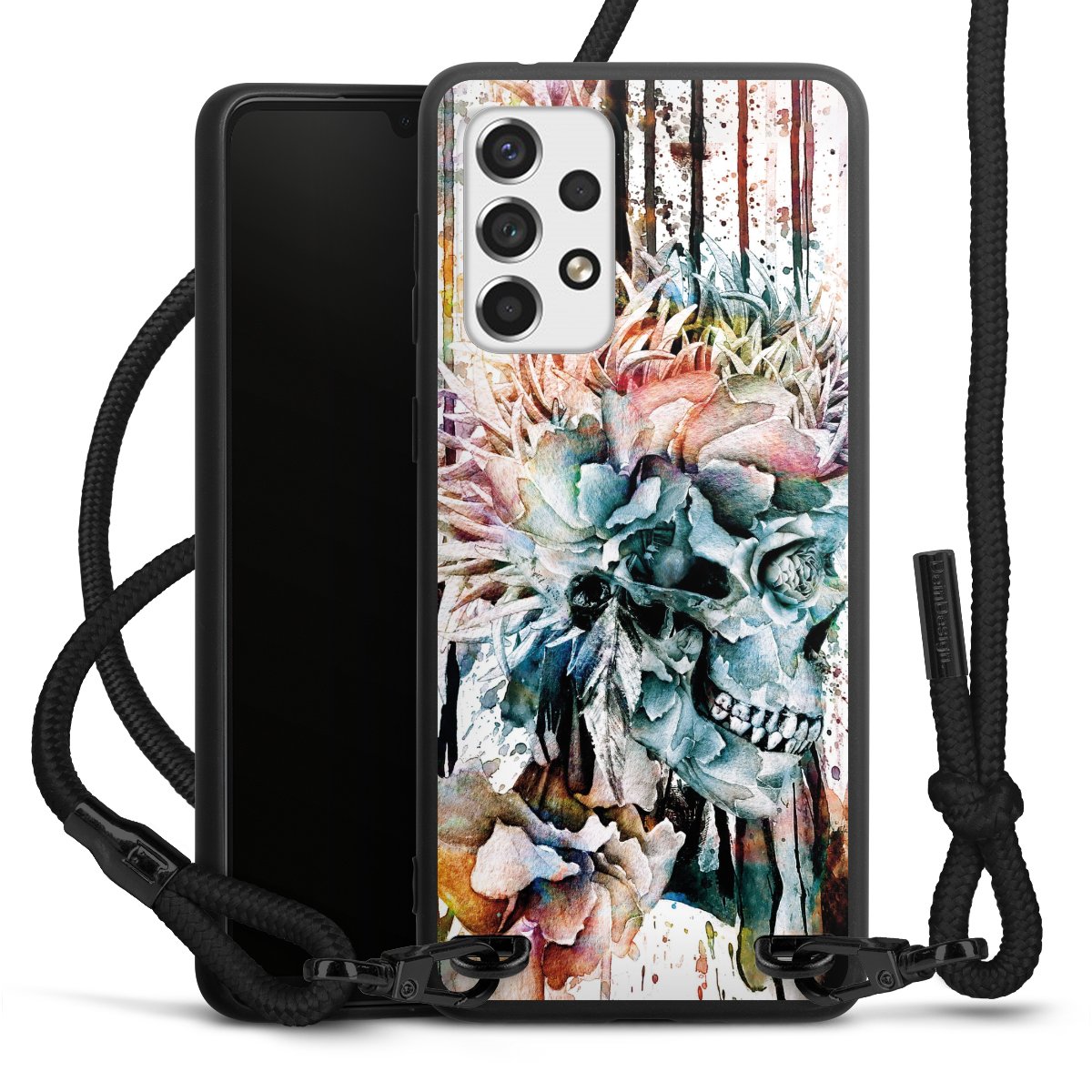 We use the solid direct print process for this phone case, which is why the print area only covers the back and the edge remains unprinted. The case to wear around your neck can be ordered unprinted, fully printed, or partially printed. For your design, either choose one of our exclusive shop motifs or get creative and create your own design, for example with photos and overlays. Design your own personal trend accessory and make an individual statement on the streets!