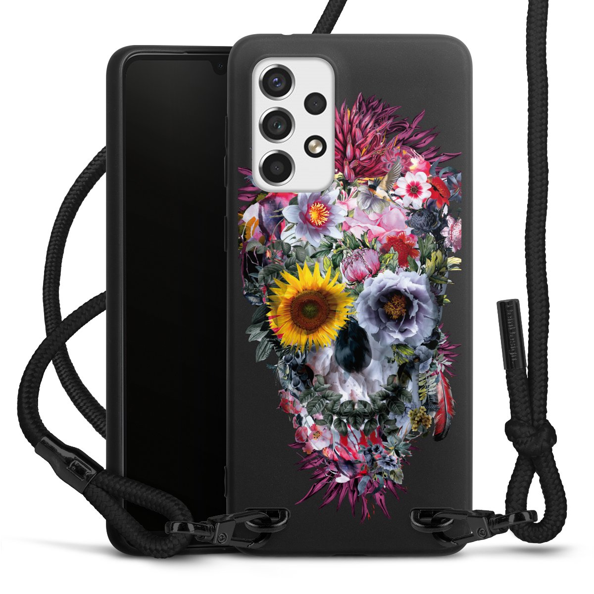 We use the solid direct print process for this phone case, which is why the print area only covers the back and the edge remains unprinted. The case to wear around your neck can be ordered unprinted, fully printed, or partially printed. For your design, either choose one of our exclusive shop motifs or get creative and create your own design, for example with photos and overlays. Design your own personal trend accessory and make an individual statement on the streets!