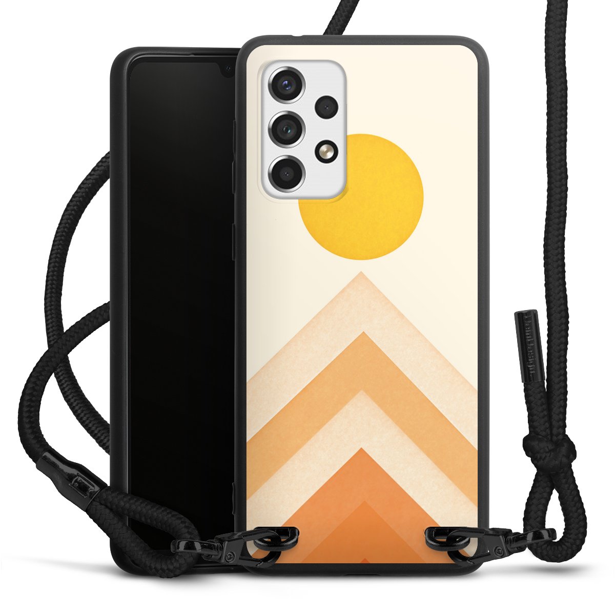 We use the solid direct print process for this phone case, which is why the print area only covers the back and the edge remains unprinted. The case to wear around your neck can be ordered unprinted, fully printed, or partially printed. For your design, either choose one of our exclusive shop motifs or get creative and create your own design, for example with photos and overlays. Design your own personal trend accessory and make an individual statement on the streets!
