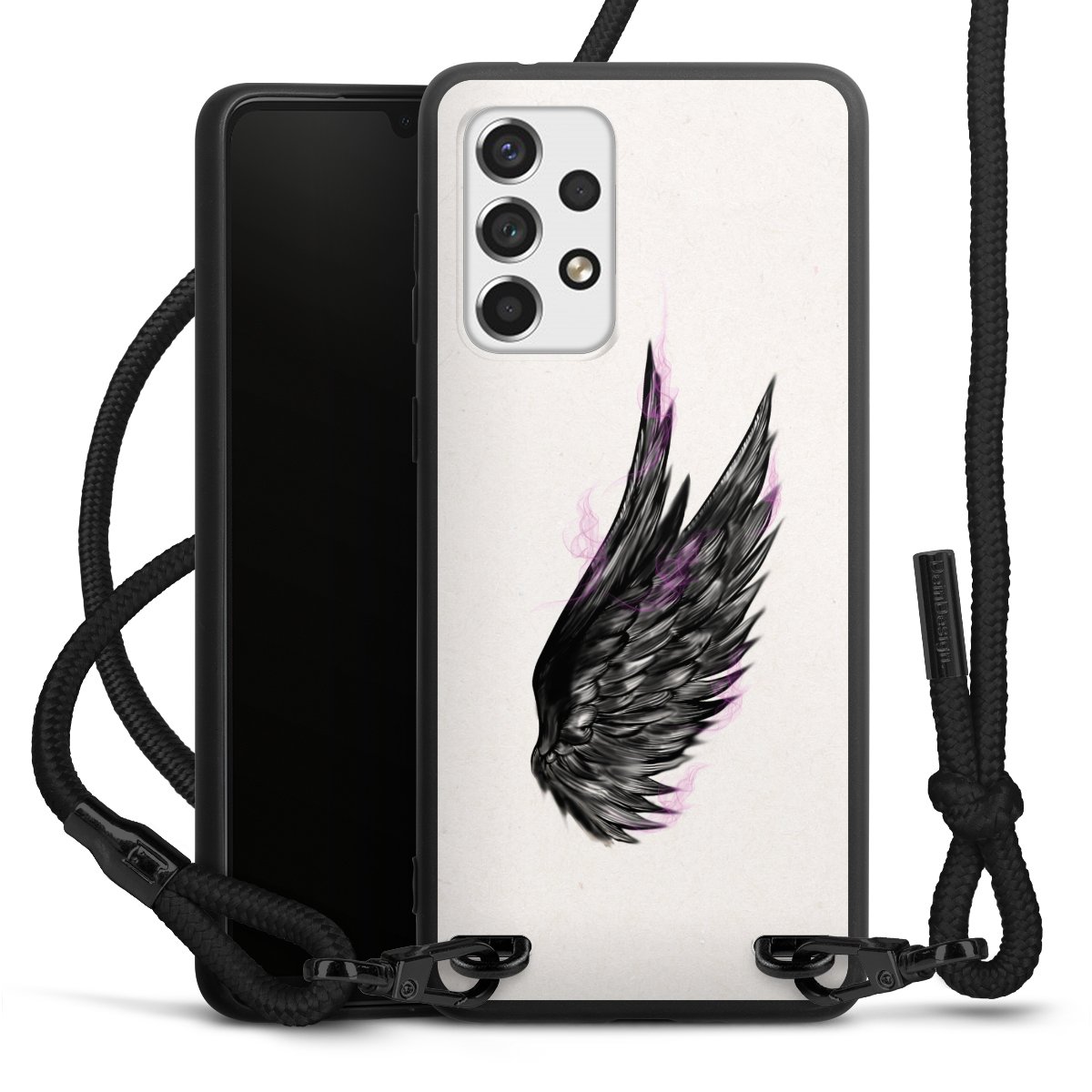 We use the solid direct print process for this phone case, which is why the print area only covers the back and the edge remains unprinted. The case to wear around your neck can be ordered unprinted, fully printed, or partially printed. For your design, either choose one of our exclusive shop motifs or get creative and create your own design, for example with photos and overlays. Design your own personal trend accessory and make an individual statement on the streets!