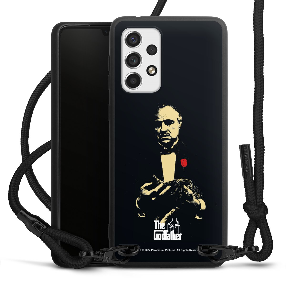 The matt black silicone case is made of flexible TPU (thermoplastic polyurethane) and offers robust protection. The durable, unbreakable material makes the cover flexible and dimensionally stable at the same time. The matte surface makes your design stand out more and is less susceptible to fingerprints and dirt. The stylish trend accessory fits comfortably in the hand and is perfectly complemented by the fabric (polyester) mobile phone strap. The braided fabric strap is approx. 1.70 metres long with a diameter of approx. 0.5 cm. Due to the special knotting technique, the length of the strap can be adjusted by simply pulling it, so that you can adapt it individually to your wishes. The practical case to wear around your neck is available with the fabric strap in black. As a little icing on the cake, we have provided the strap with a chic metal fastener in matt black. The strap is securely fastened to the case with loops made of high-quality genuine leather and press studs. The ends of the fabric strap are covered with metallic end caps and thus protected from fraying.