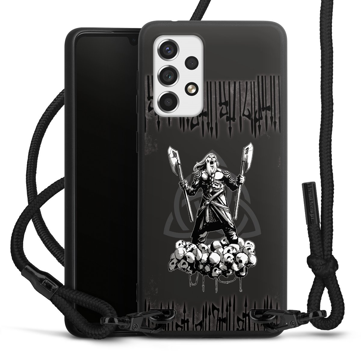 The matt black silicone case is made of flexible TPU (thermoplastic polyurethane) and offers robust protection. The durable, unbreakable material makes the cover flexible and dimensionally stable at the same time. The matte surface makes your design stand out more and is less susceptible to fingerprints and dirt. The stylish trend accessory fits comfortably in the hand and is perfectly complemented by the fabric (polyester) mobile phone strap. The braided fabric strap is approx. 1.70 metres long with a diameter of approx. 0.5 cm. Due to the special knotting technique, the length of the strap can be adjusted by simply pulling it, so that you can adapt it individually to your wishes. The practical case to wear around your neck is available with the fabric strap in black. As a little icing on the cake, we have provided the strap with a chic metal fastener in matt black. The strap is securely fastened to the case with loops made of high-quality genuine leather and press studs. The ends of the fabric strap are covered with metallic end caps and thus protected from fraying.