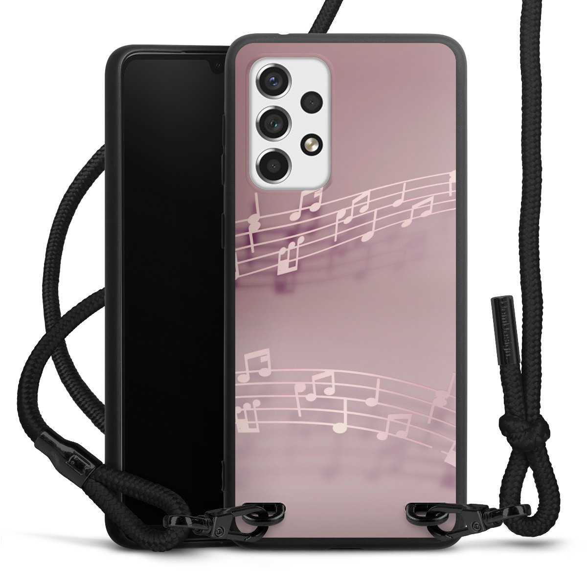 The matt black silicone case is made of flexible TPU (thermoplastic polyurethane) and offers robust protection. The durable, unbreakable material makes the cover flexible and dimensionally stable at the same time. The matte surface makes your design stand out more and is less susceptible to fingerprints and dirt. The stylish trend accessory fits comfortably in the hand and is perfectly complemented by the fabric (polyester) mobile phone strap. The braided fabric strap is approx. 1.70 metres long with a diameter of approx. 0.5 cm. Due to the special knotting technique, the length of the strap can be adjusted by simply pulling it, so that you can adapt it individually to your wishes. The practical case to wear around your neck is available with the fabric strap in black. As a little icing on the cake, we have provided the strap with a chic metal fastener in matt black. The strap is securely fastened to the case with loops made of high-quality genuine leather and press studs. The ends of the fabric strap are covered with metallic end caps and thus protected from fraying.