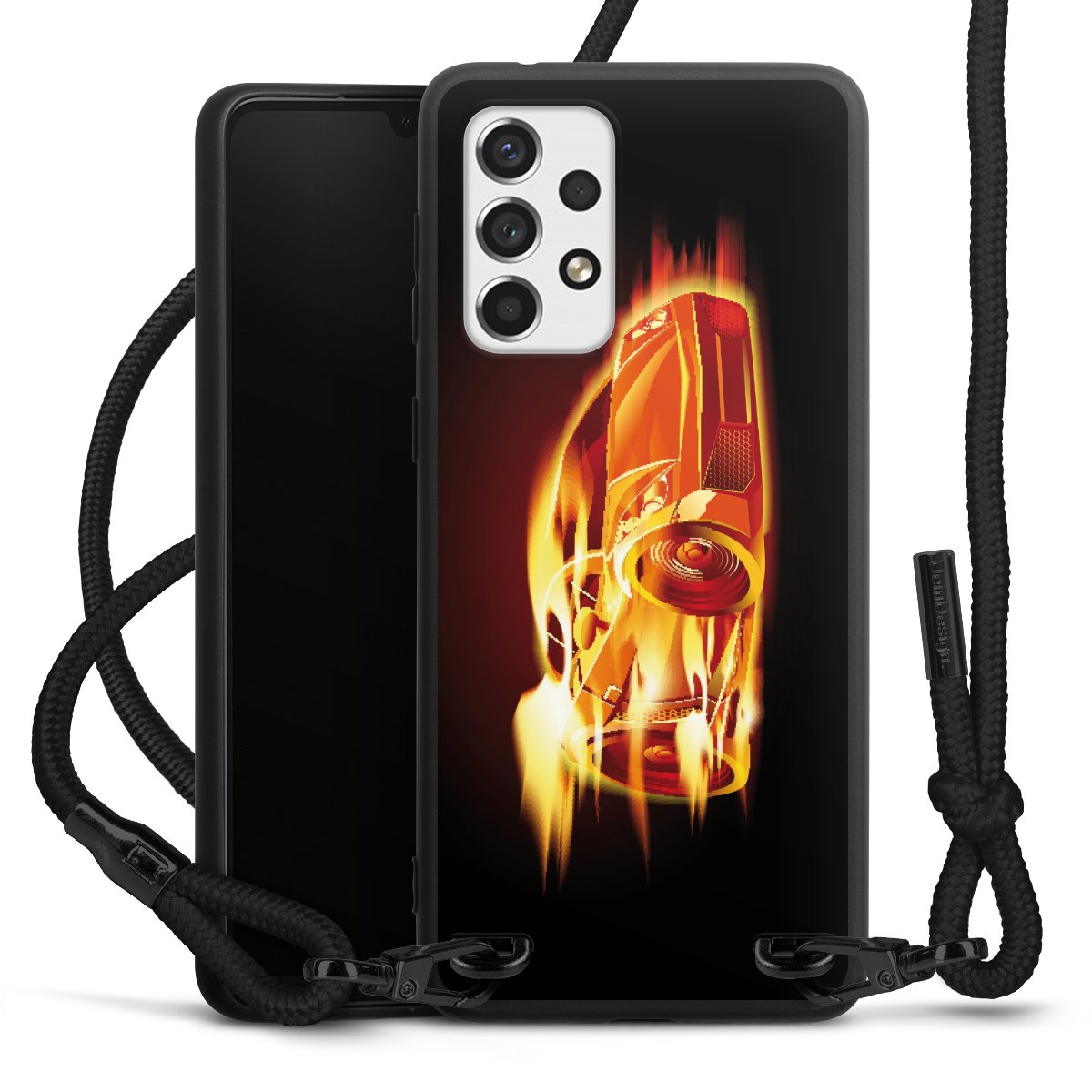 We use the solid direct print process for this phone case, which is why the print area only covers the back and the edge remains unprinted. The case to wear around your neck can be ordered unprinted, fully printed, or partially printed. For your design, either choose one of our exclusive shop motifs or get creative and create your own design, for example with photos and overlays. Design your own personal trend accessory and make an individual statement on the streets!