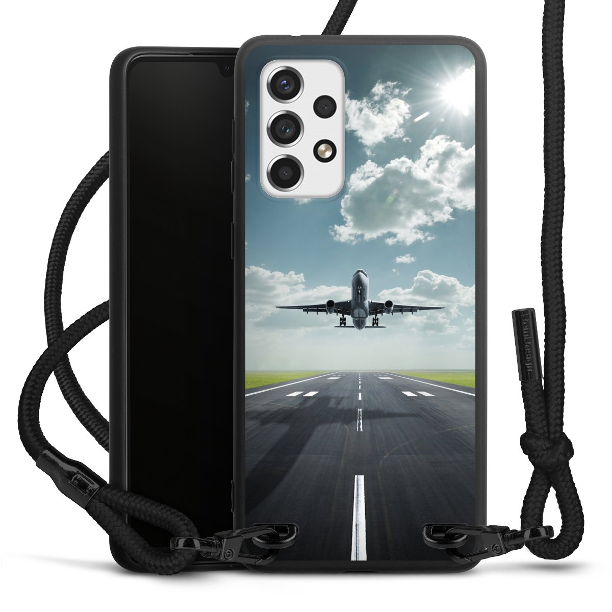 We use the solid direct print process for this phone case, which is why the print area only covers the back and the edge remains unprinted. The case to wear around your neck can be ordered unprinted, fully printed, or partially printed. For your design, either choose one of our exclusive shop motifs or get creative and create your own design, for example with photos and overlays. Design your own personal trend accessory and make an individual statement on the streets!