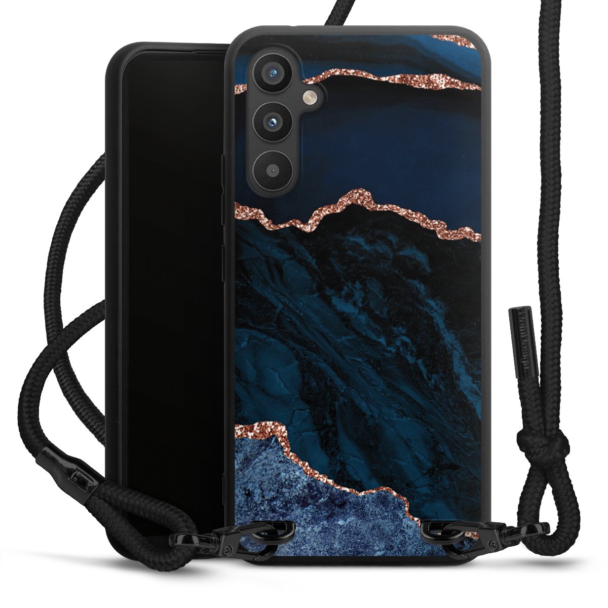 The matt black silicone case is made of flexible TPU (thermoplastic polyurethane) and offers robust protection. The durable, unbreakable material makes the cover flexible and dimensionally stable at the same time. The matte surface makes your design stand out more and is less susceptible to fingerprints and dirt. The stylish trend accessory fits comfortably in the hand and is perfectly complemented by the fabric (polyester) mobile phone strap. The braided fabric strap is approx. 1.70 metres long with a diameter of approx. 0.5 cm. Due to the special knotting technique, the length of the strap can be adjusted by simply pulling it, so that you can adapt it individually to your wishes. The practical case to wear around your neck is available with the fabric strap in black. As a little icing on the cake, we have provided the strap with a chic metal fastener in matt black. The strap is securely fastened to the case with loops made of high-quality genuine leather and press studs. The ends of the fabric strap are covered with metallic end caps and thus protected from fraying.