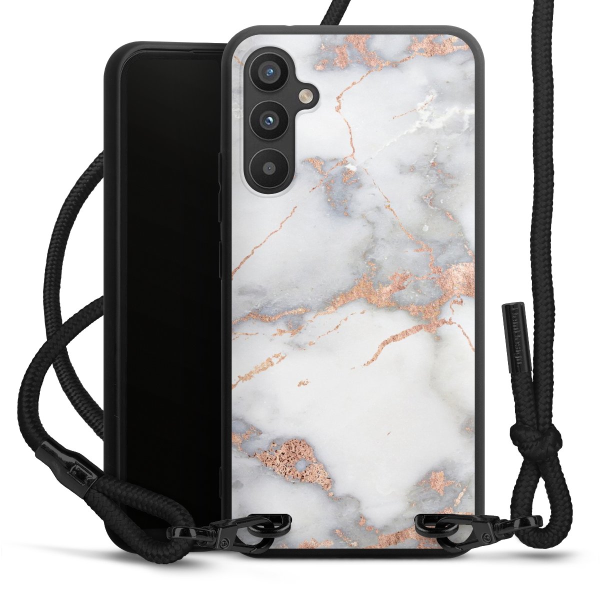 The matt black silicone case is made of flexible TPU (thermoplastic polyurethane) and offers robust protection. The durable, unbreakable material makes the cover flexible and dimensionally stable at the same time. The matte surface makes your design stand out more and is less susceptible to fingerprints and dirt. The stylish trend accessory fits comfortably in the hand and is perfectly complemented by the fabric (polyester) mobile phone strap. The braided fabric strap is approx. 1.70 metres long with a diameter of approx. 0.5 cm. Due to the special knotting technique, the length of the strap can be adjusted by simply pulling it, so that you can adapt it individually to your wishes. The practical case to wear around your neck is available with the fabric strap in black. As a little icing on the cake, we have provided the strap with a chic metal fastener in matt black. The strap is securely fastened to the case with loops made of high-quality genuine leather and press studs. The ends of the fabric strap are covered with metallic end caps and thus protected from fraying.