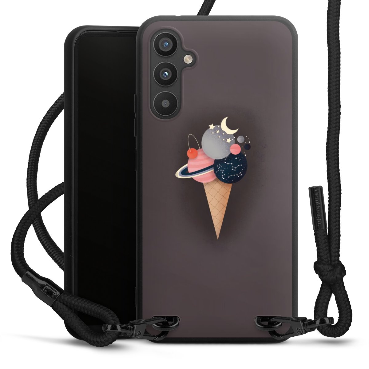 Pure Black: Phone case, fabric strap and metal details in stylish matt black.