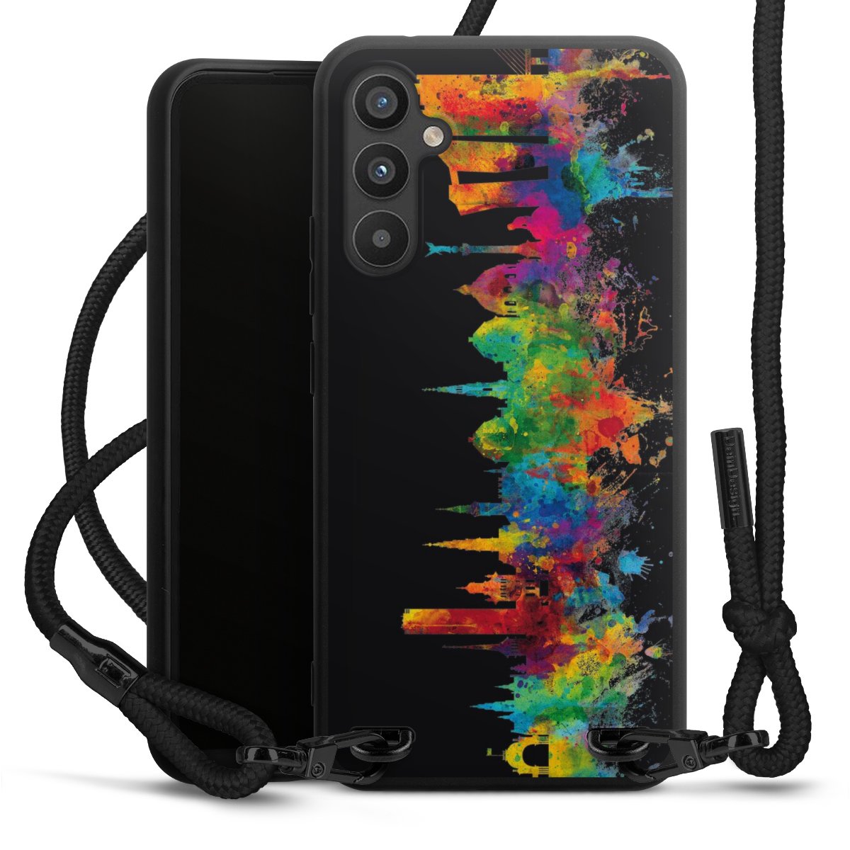 We use the solid direct print process for this phone case, which is why the print area only covers the back and the edge remains unprinted. The case to wear around your neck can be ordered unprinted, fully printed, or partially printed. For your design, either choose one of our exclusive shop motifs or get creative and create your own design, for example with photos and overlays. Design your own personal trend accessory and make an individual statement on the streets!